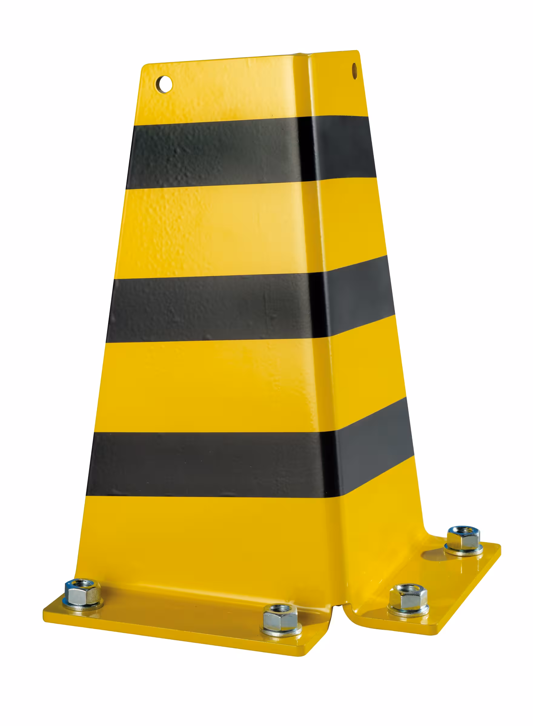 Anfahrschutz PC6: Sicherheitsvorrichtung zu exponierten Ständerrahmen. Mit 4 Löchern für die Bodenverankerung. Inklusive 4 Segmentanker M10 × 115 mm (Bohrlochtiefe 115 mm). Ausführung: Stahlblech, St 37-2. Farbe: Gelb/Schwarz.