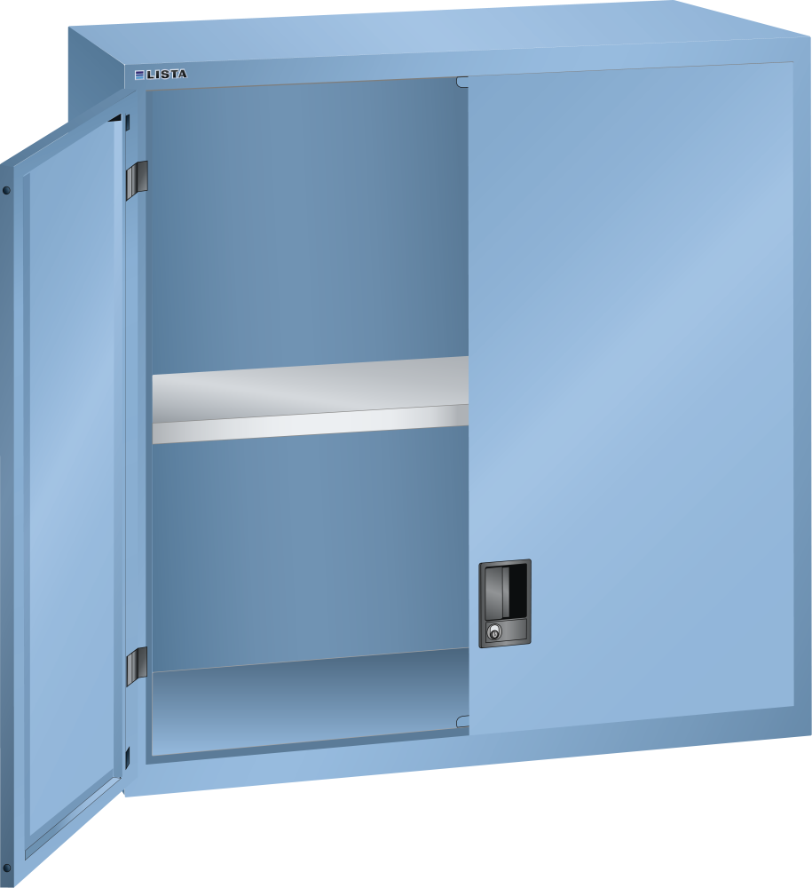 Aufsatzschrank mit Vollblech-Flügeltüren 54x27E (BxTxH) 1023x572x1000mm KEY Lock Lichtblau RAL 5012