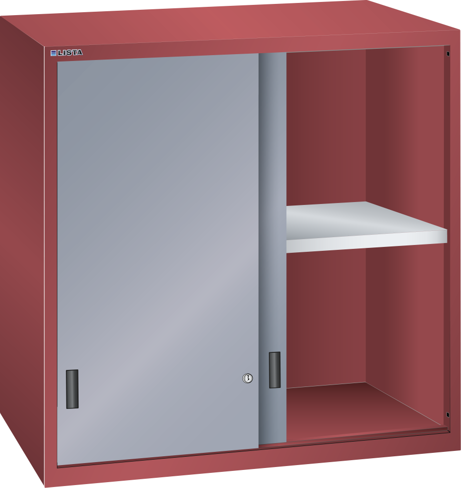 Aufsatzschrank mit Vollblech-Schiebetüren 54x36E (BxTxH) 1023x725x1000mm KEY Lock Rubinrot RAL 3003 / Grau metallic NCS S 6502-B