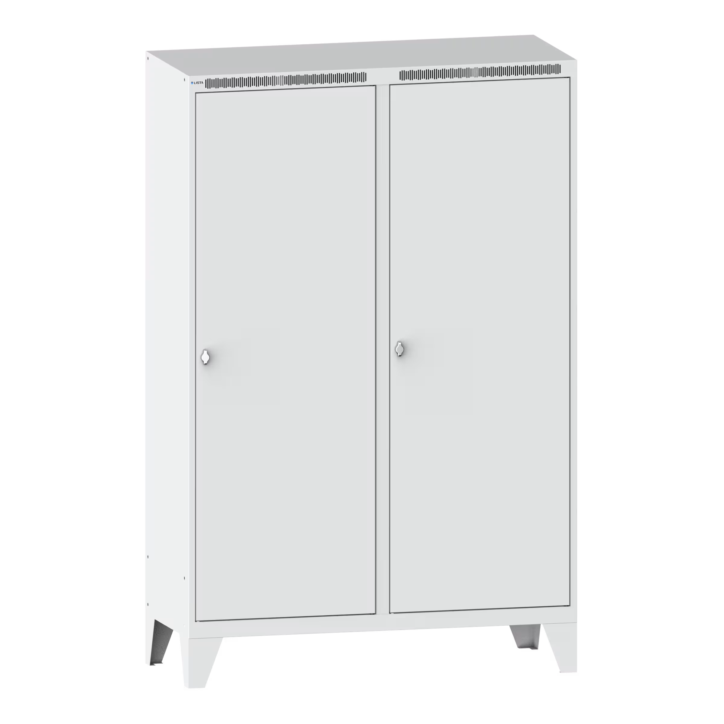 Garderobenschrank (BxTxH) 1200x500x1850mm 4 Abteile mit Füssen, Türen glatt, Verschlussvorrichtung Lichtgrau RAL 7035