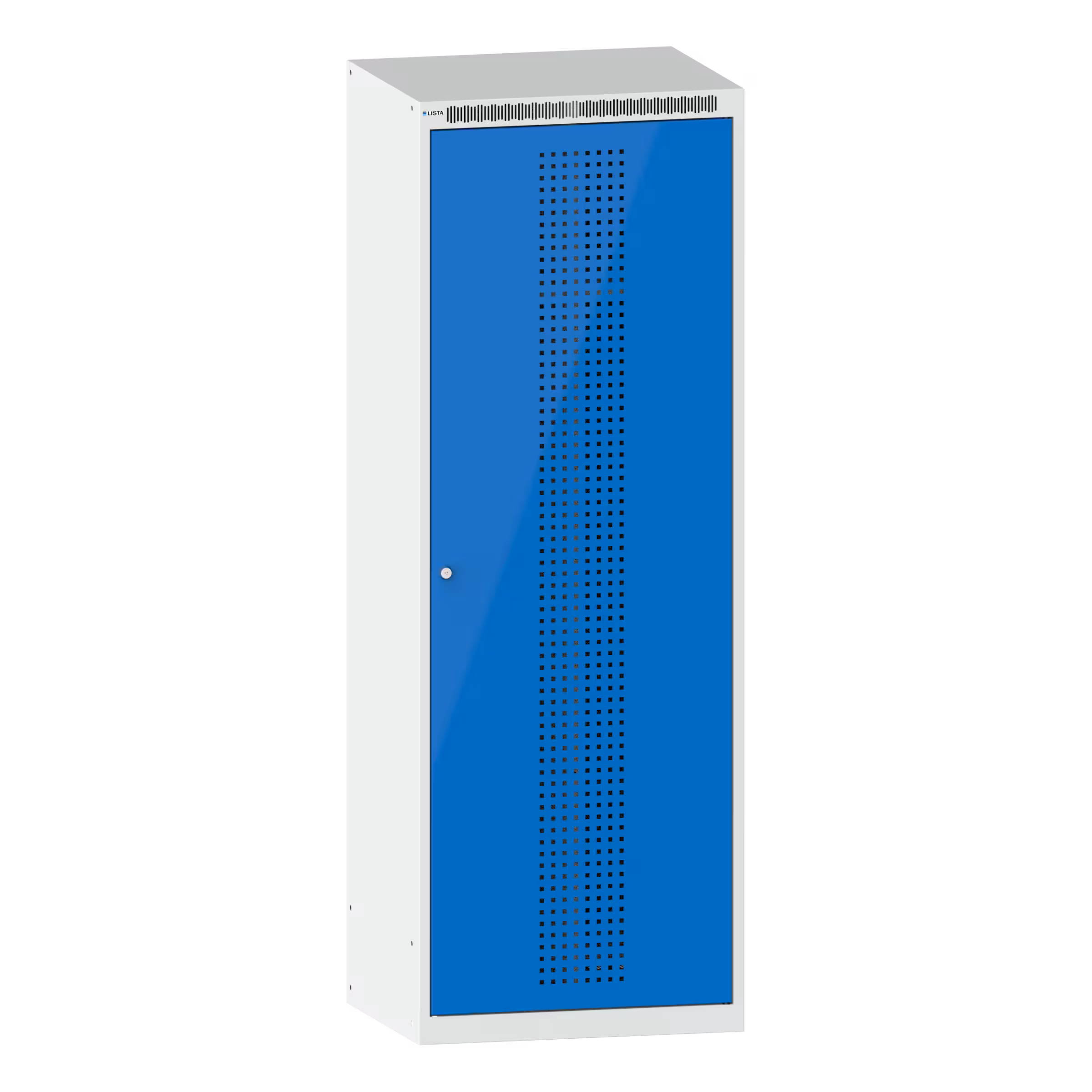 Garderobenschrank (BxTxH) 600x500x1700mm 2 Abteile ohne Unterbau, Türen gelocht, KEY Lock Lichtgrau RAL 7035 / Himmelblau RAL 5015