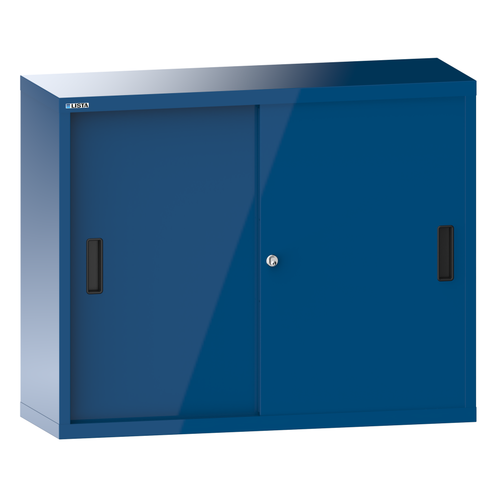 Hängeschrank mit Vollblech-Schiebetüren (BxTxH) 1000x350x800mm inkl. Befestigungsmaterial für Lochrückwand an Tragsäule, KEY Lock Enzianblau RAL 5010