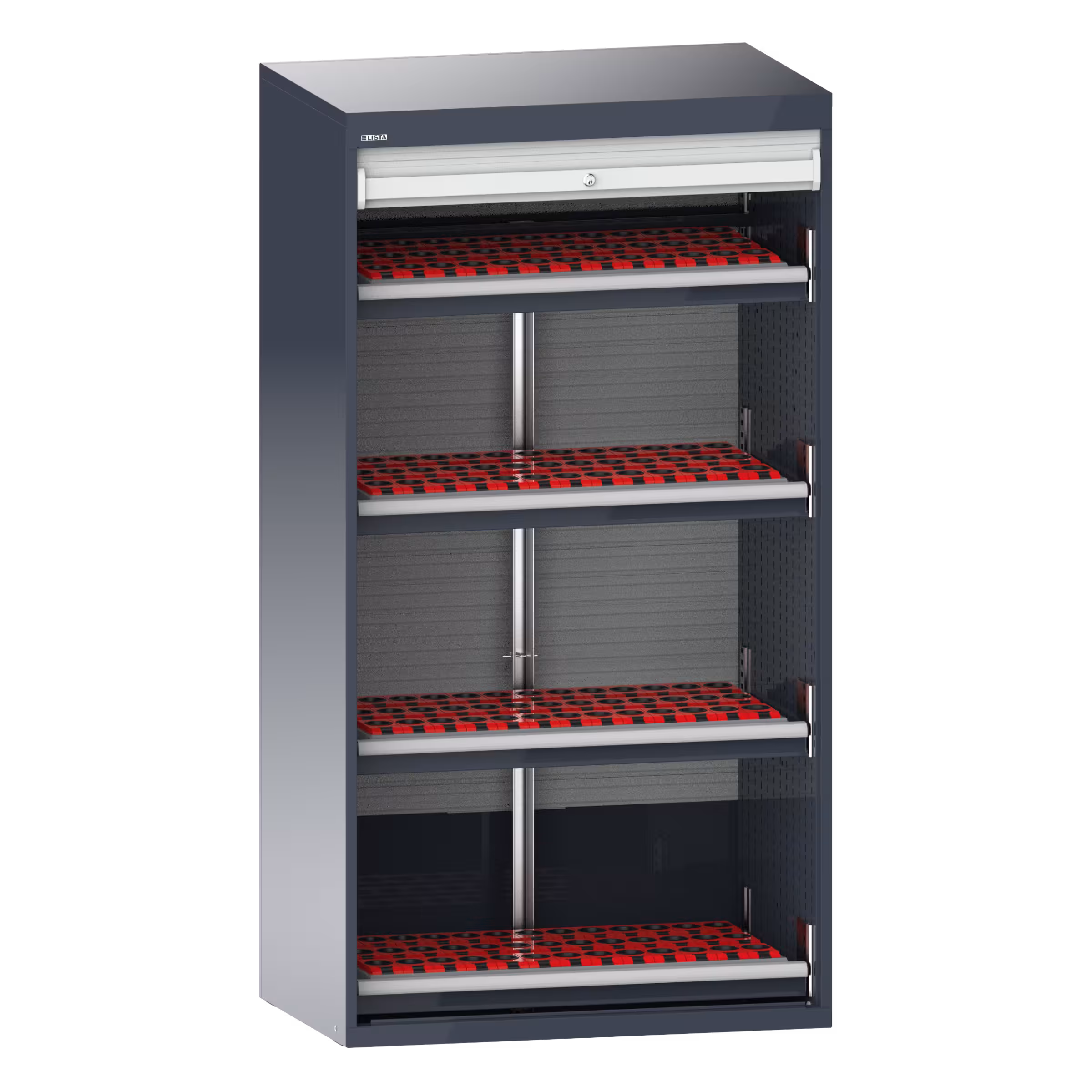 NC-Schrank mit Rollladen 54x27E (BxTxH) 1038x691x1950mm 4 Schubladen, 156 Halter ISO-SK 40 KEY Lock Schiefergrau RAL 7015