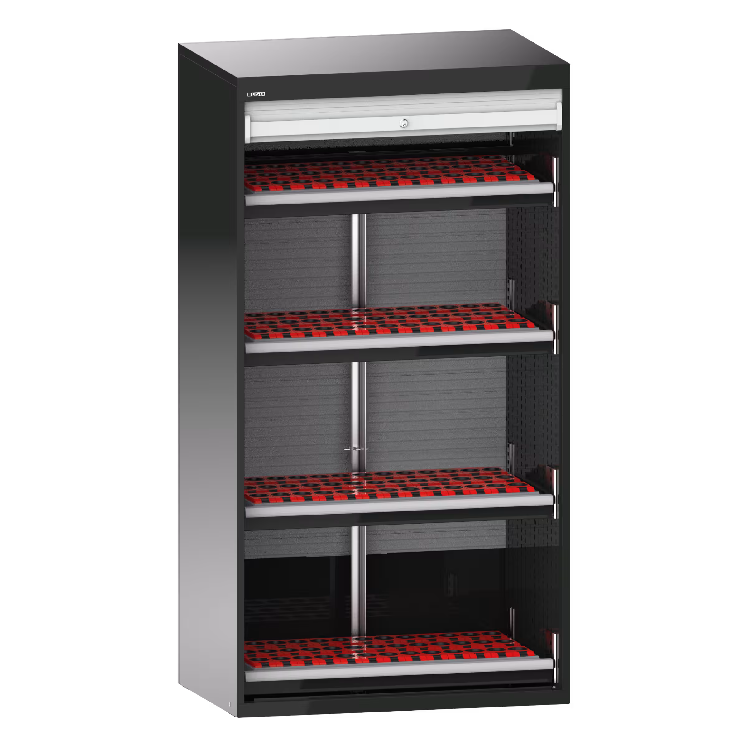 NC-Schrank mit Rollladen 54x27E (BxTxH) 1038x691x1950mm 4 Schubladen, 156 Halter ISO-SK 40 KEY Lock Schwarz NCS S 9000-N