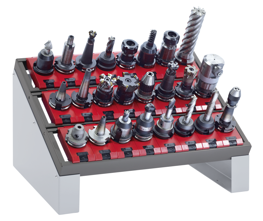 NC-Tischständer mit Einsatzrahmen 36x27E (BxTxH) 588x413x345mm 24 Halter ISO-SK 40 Hellgrau NCS S 2000-N