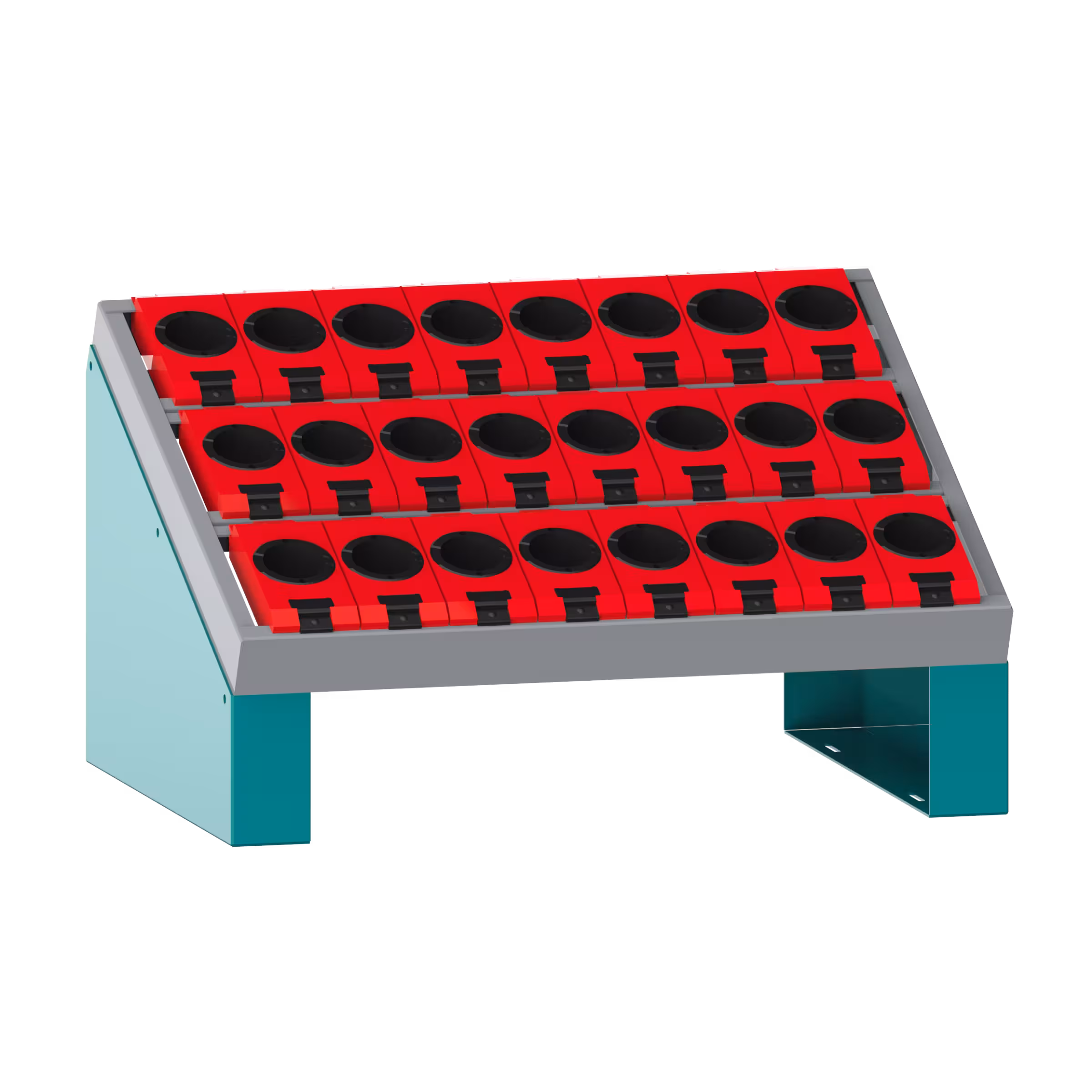 NC-Tischständer mit Einsatzrahmen 36x27E (BxTxH) 588x413x345mm 24 Halter ISO-SK 40 Türkisblau RAL 5018