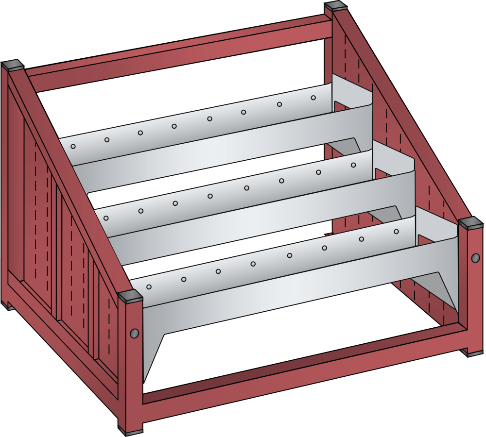 NC-Tischständer: Inklusive 3 Werkzeugwechselrahmen, 3 Rahmenträgerpaaren, horizontal. Ausführung: Stahlrohr. Farbe: gemäss Farbkarte.