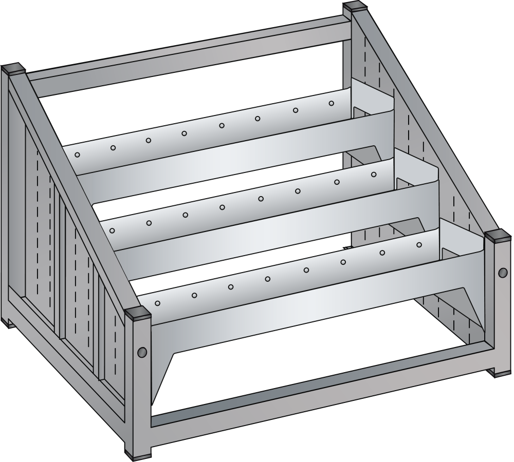 NC-Tischständer: Inklusive 3 Werkzeugwechselrahmen, 3 Rahmenträgerpaaren, horizontal. Ausführung: Stahlrohr. Farbe: gemäss Farbkarte.