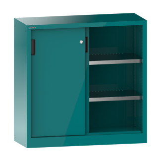 Schiebetürschrank mit 2 Vollblech-Türen (BxTxH) 1000x400x1000mm 2 Verstellböden KEY Lock Türkisblau RAL 5018