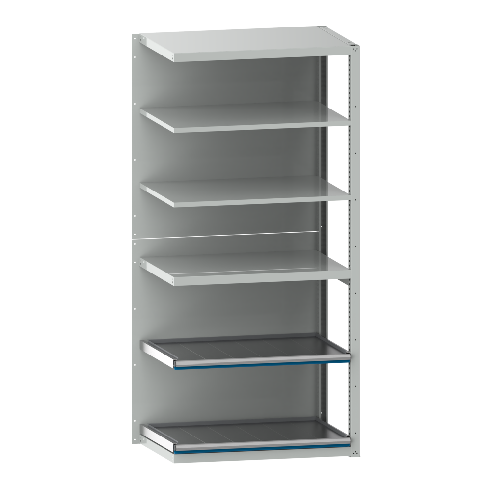 Schubladenregal Anbauregal 54x36E (BxTxH) 1020x706x2200mm Lichtgrau RAL 7035 / Lichtblau RAL 5012