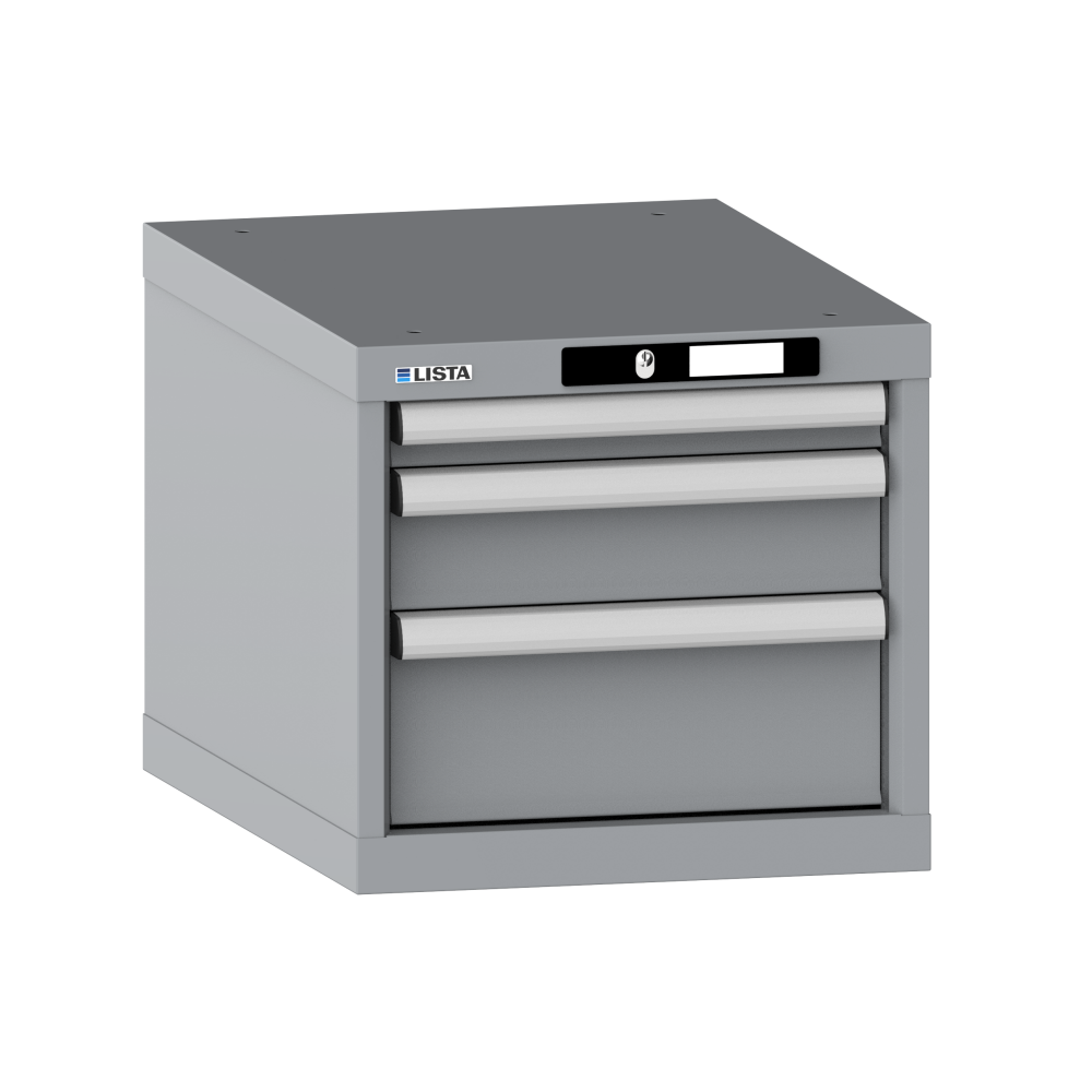 Schubladenschrank 18x27E (BxTxH) 411x572x383mm 3 Schubladen (1x50/1x100/1x150) 75kg AUTO Lock Taubengrau NCS S 4502-B