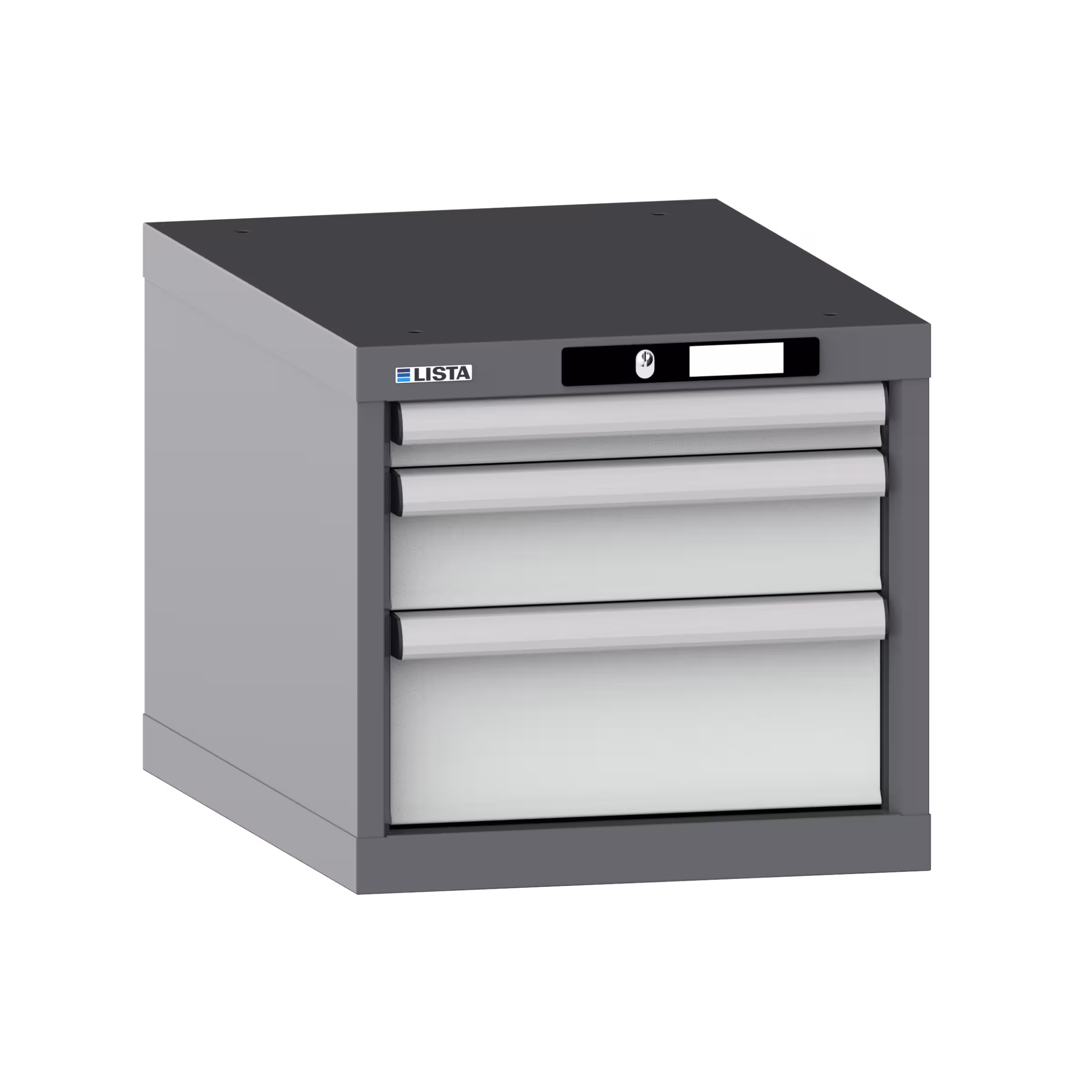 Schubladenschrank 18x27E (BxTxH) 411x572x383mm 3 Schubladen (1x50/1x100/1x150) 75kg RFID Lock Grau metallic NCS S 6502-B / Lichtgrau RAL 7035