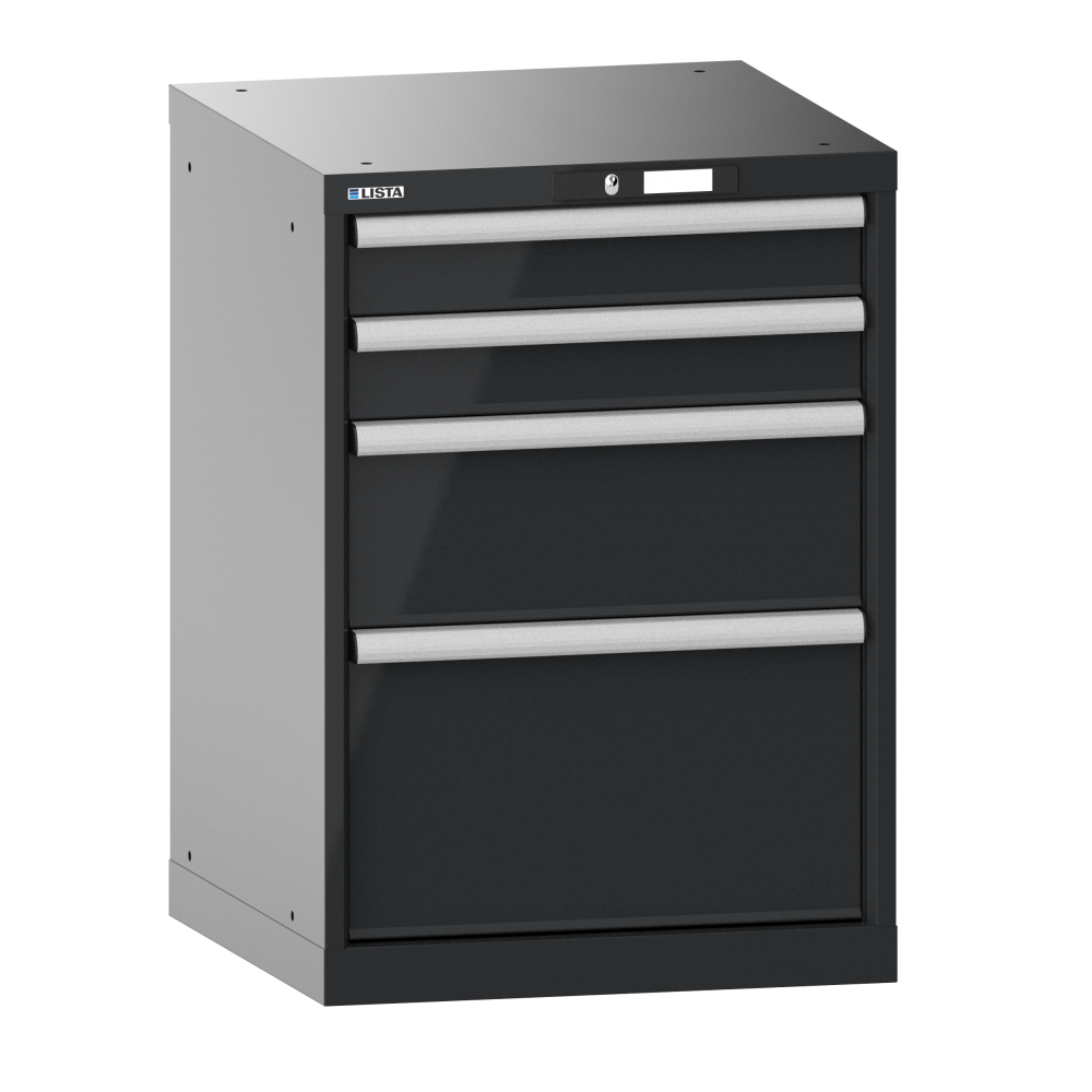 Schubladenschrank 27x27E (BxTxH) 564x572x800mm 4 Schubladen (2x100/1x200/1x300) 75kg AUTO Lock Anthrazitgrau RAL 7016