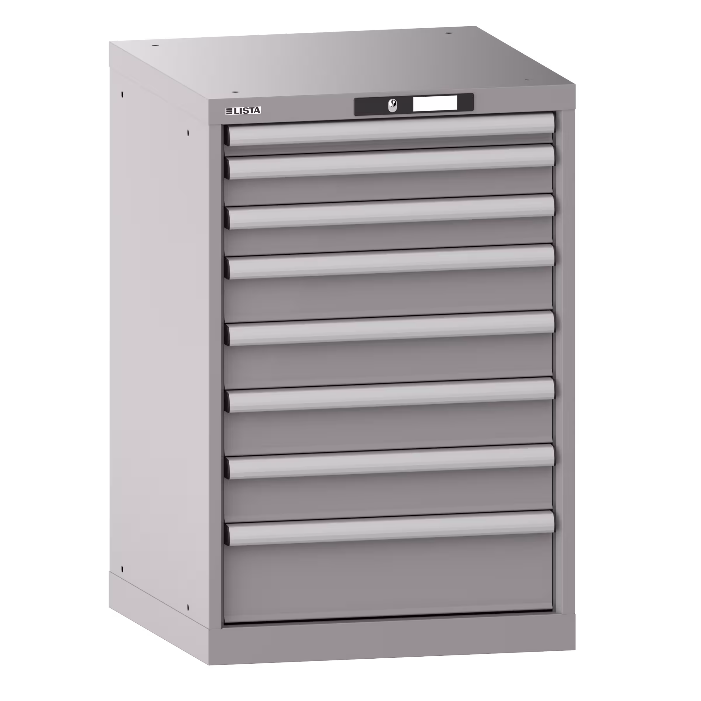 Schubladenschrank 27x27E (BxTxH) 564x572x850mm 8 Schubladen (1x50/2x75/4x100/1x150) 75kg KEY Lock Graualuminium RAL 9007