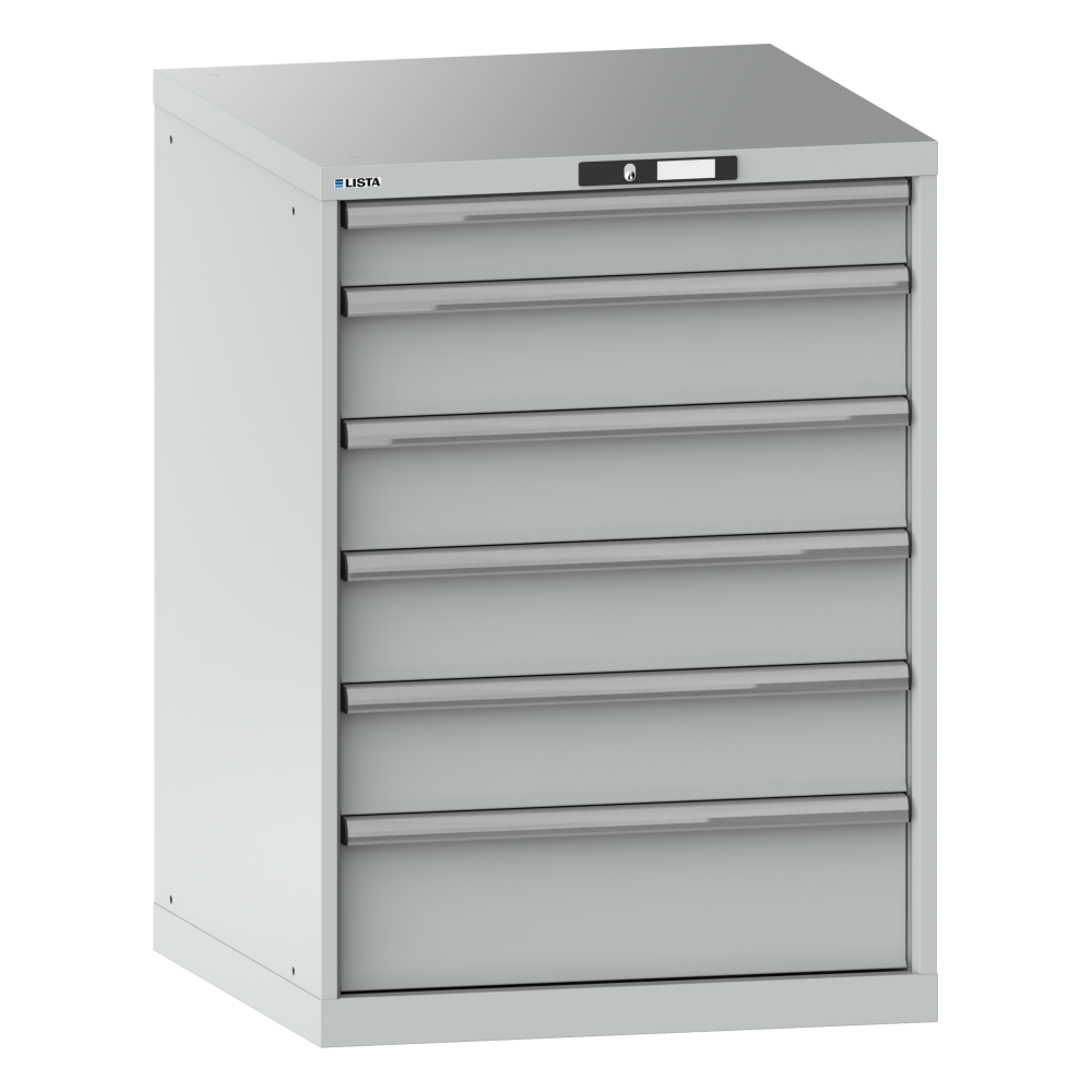 Schubladenschrank 36x36E (BxTxH) 717x725x1000mm 6 Schubladen (1x100/4x150/1x200) 75kg KEY Lock Hellgrau NCS S 2000-N