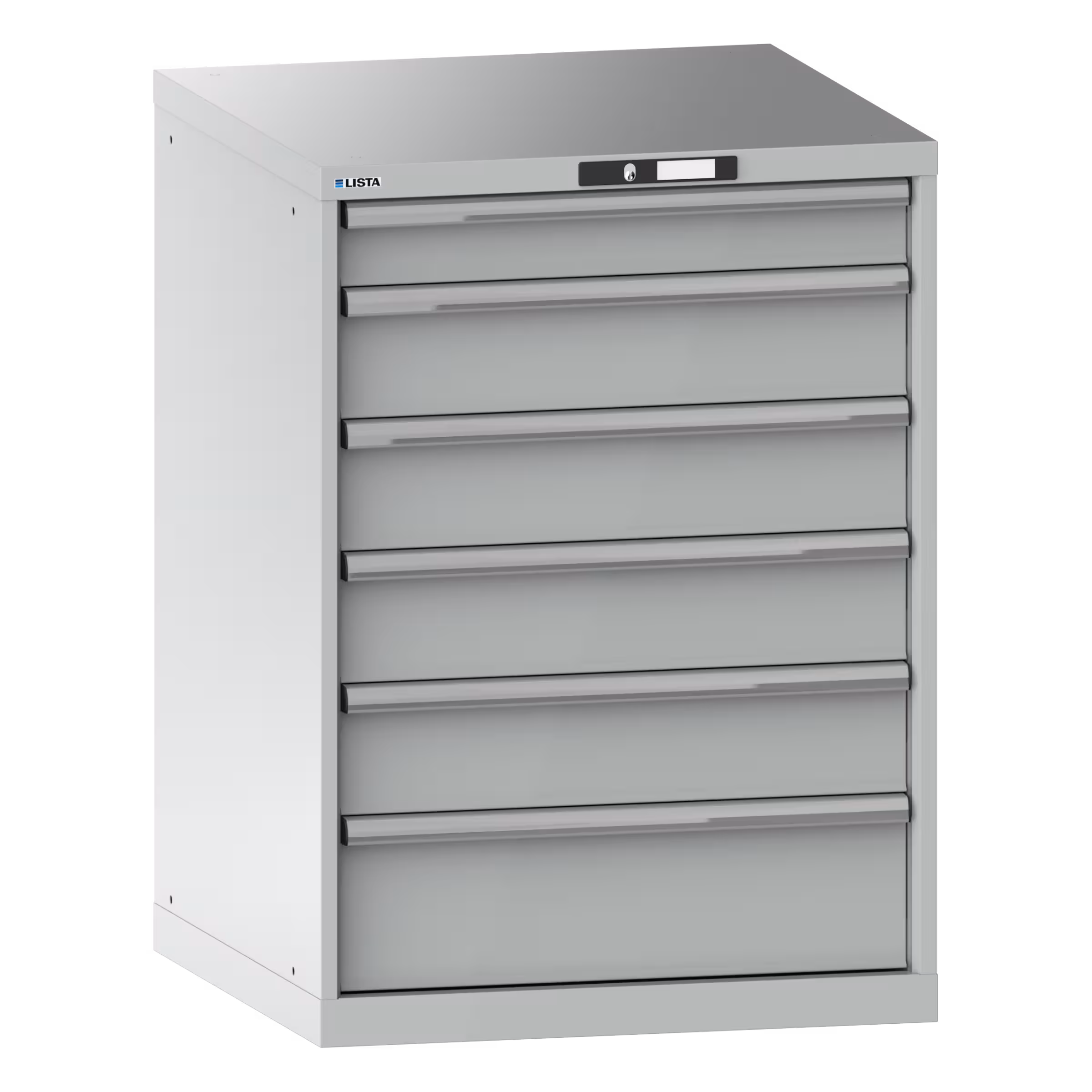 Schubladenschrank 36x36E (BxTxH) 717x725x1000mm 6 Schubladen (1x100/4x150/1x200) 75kg KEY Lock Lichtgrau RAL 7035