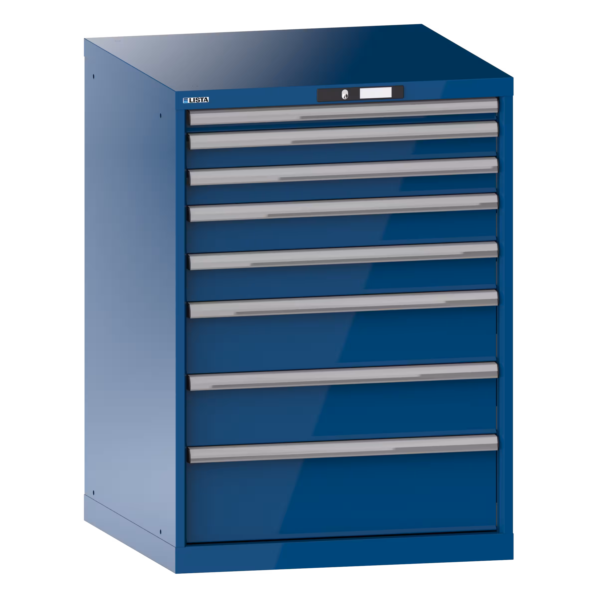 Schubladenschrank 36x36E (BxTxH) 717x725x1000mm 8 Schubladen (1x50/2x75/2x100/2x150/1x200) 75kg KEY Lock Capriblau RAL 5019