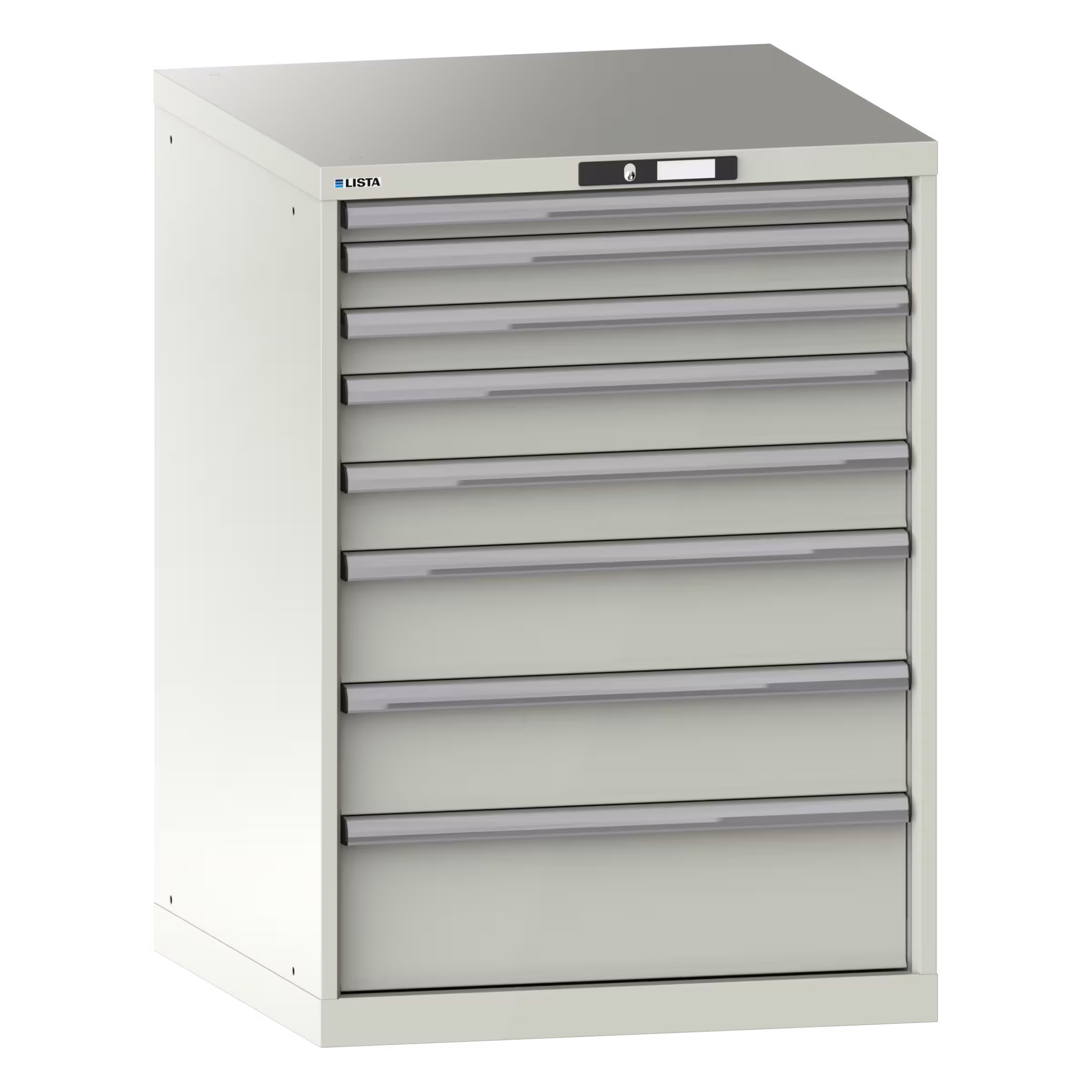 Schubladenschrank 36x36E (BxTxH) 717x725x1000mm 8 Schubladen (1x50/2x75/2x100/2x150/1x200) 75kg KEY Lock Grauweiss RAL 9002