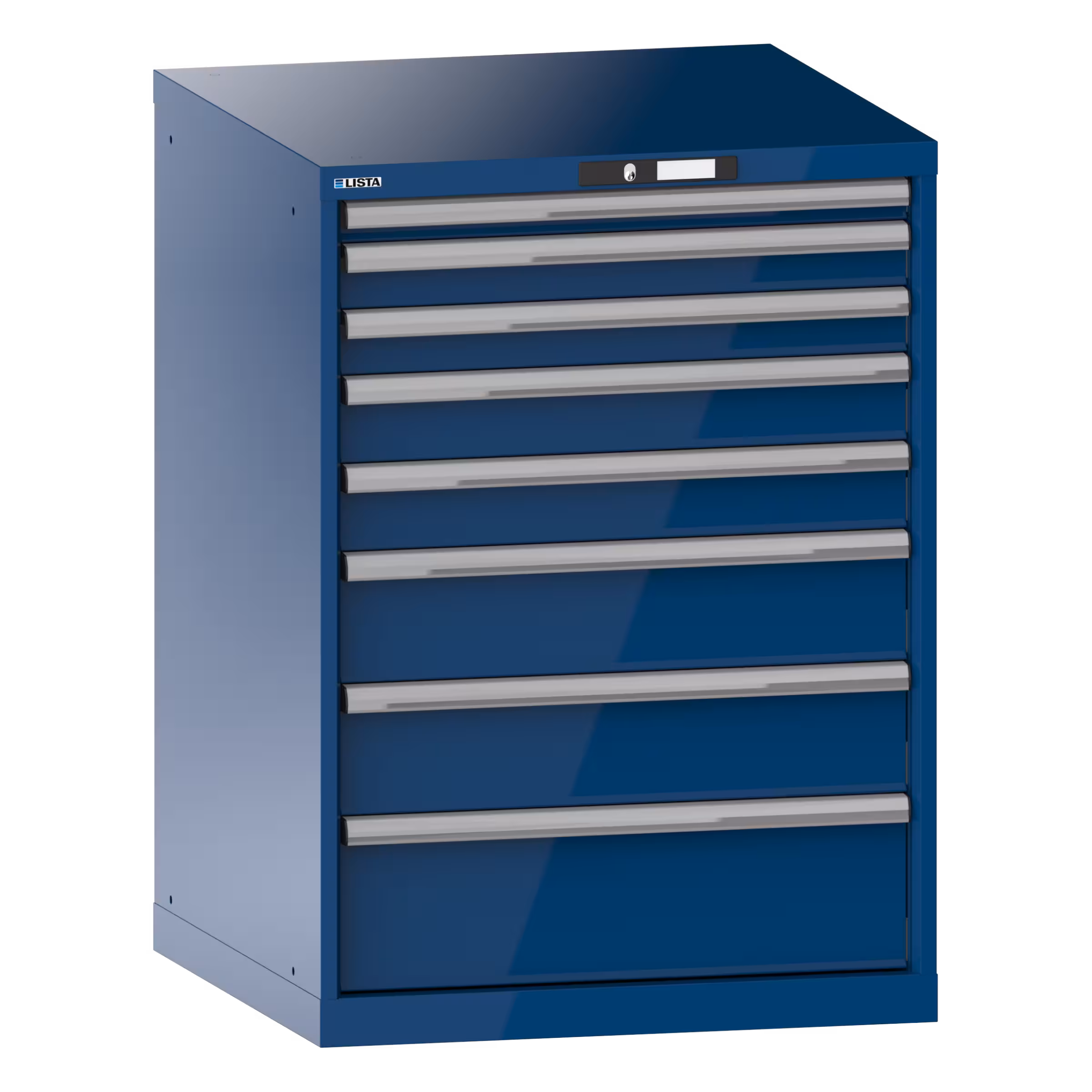 Schubladenschrank 36x36E (BxTxH) 717x725x1000mm 8 Schubladen (1x50/2x75/2x100/2x150/1x200) 75kg KEY Lock Signalblau RAL 5005