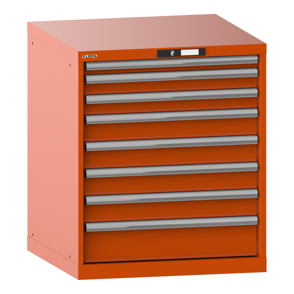Schubladenschrank 36x36E (BxTxH) 717x725x850mm 8 Schubladen (1x50/2x75/4x100/1x150) 75kg KEY Lock Orange RAL 2004