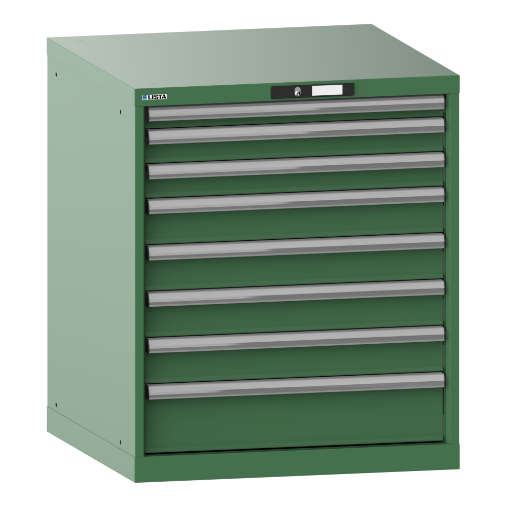 Schubladenschrank 36x36E (BxTxH) 717x725x850mm 8 Schubladen (1x50/2x75/4x100/1x150) 75kg KEY Lock Resedagrün RAL 6011