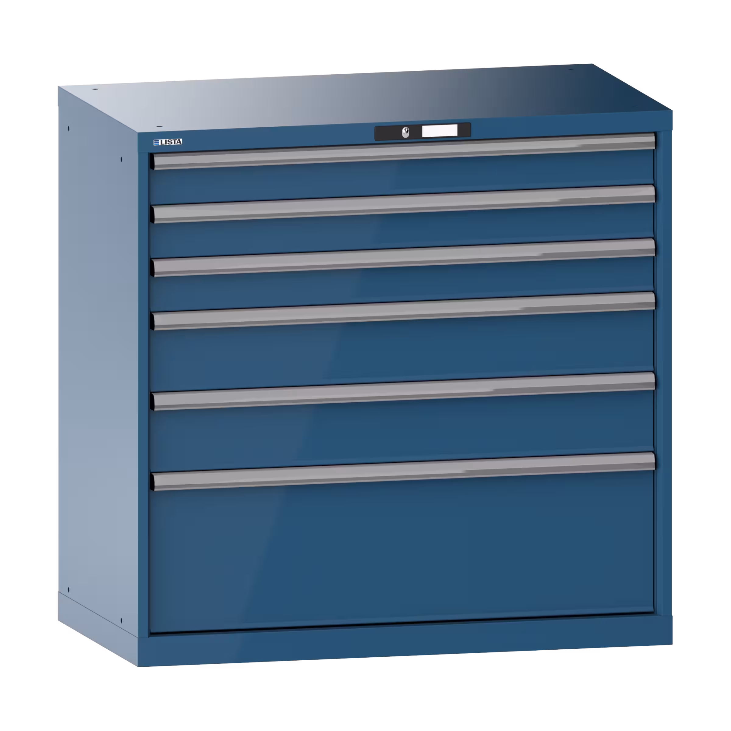 Schubladenschrank 54x27E (BxTxH) 1023x572x1000mm 6 Schubladen (3x100/2x150/1x300) 200kg CODE Lock Brillantblau RAL 5007