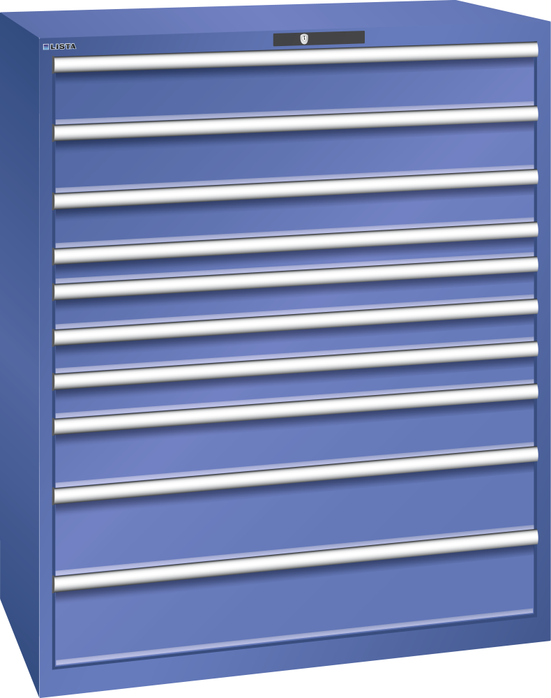 Schubladenschrank 64x36E (BxTxH) 1193x725x1450mm 10 Schubladen (2x150/1x125/1x75/3x100/1x150/2x200) 200kg AUTO Lock Brillantblau RAL 5007