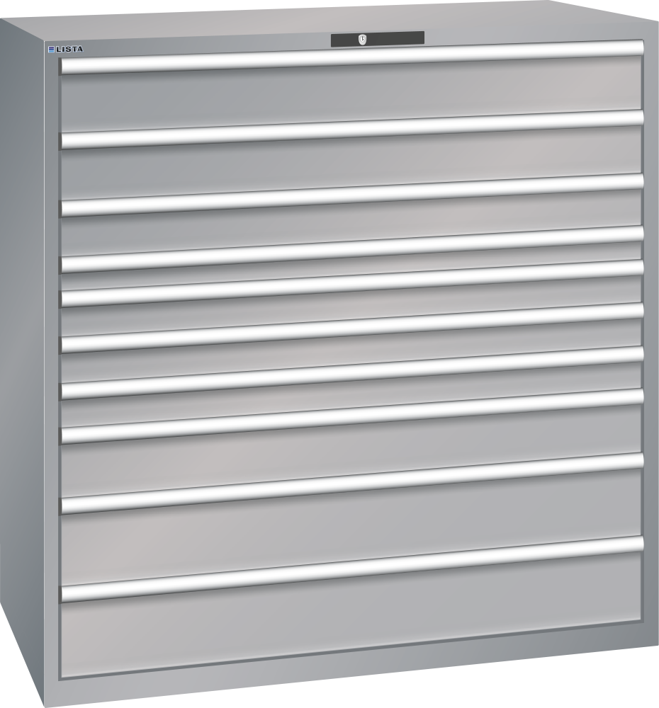 Schubladenschrank 78x36E (BxTxH) 1431x725x1450mm 10 Schubladen (2x150/1x125/1x75/3x100/1x150/2x200) 200kg AUTO Lock Taubengrau NCS S 4502-B