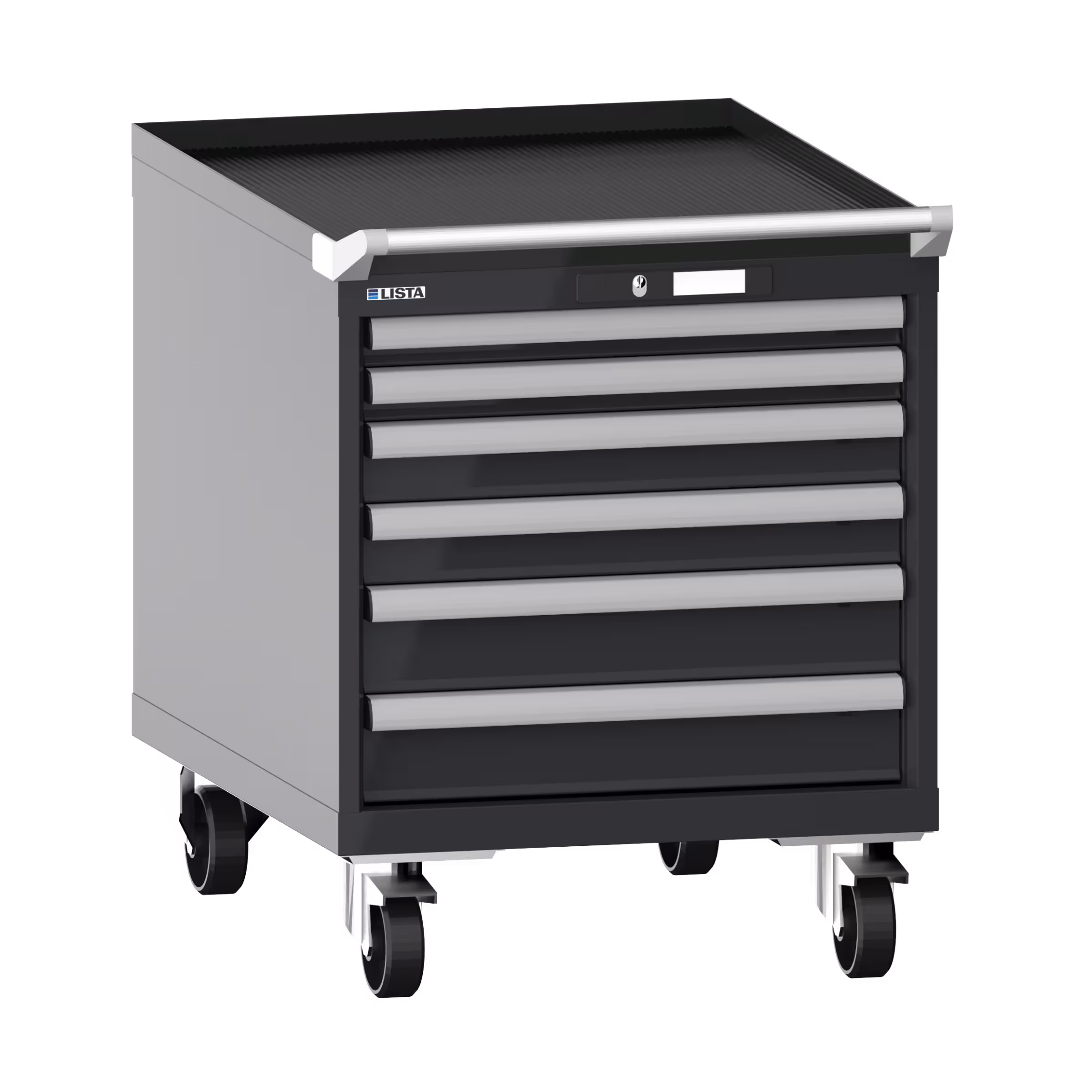 Schubladenschrank mobil 27x36E (BxTxH) 564x725x723mm 6 Schubladen (2x50/2x75/2x100) 75kg Nylonrollen Ø100mm KEY Lock Anthrazitgrau RAL 7016