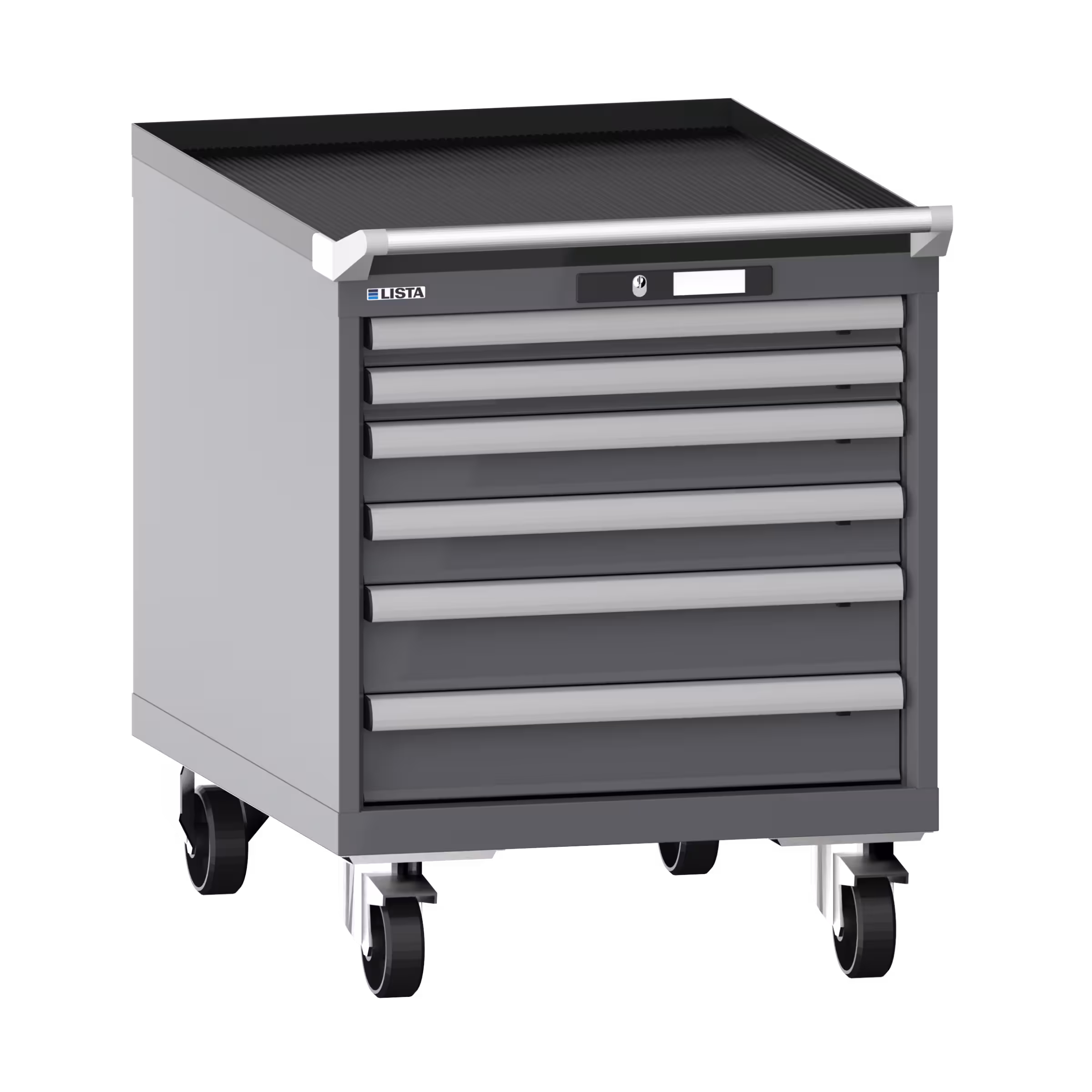 Schubladenschrank mobil 27x36E (BxTxH) 564x725x723mm 6 Schubladen (2x50/2x75/2x100) 75kg Nylonrollen Ø100mm KEY Lock Grau metallic NCS S 6502-B