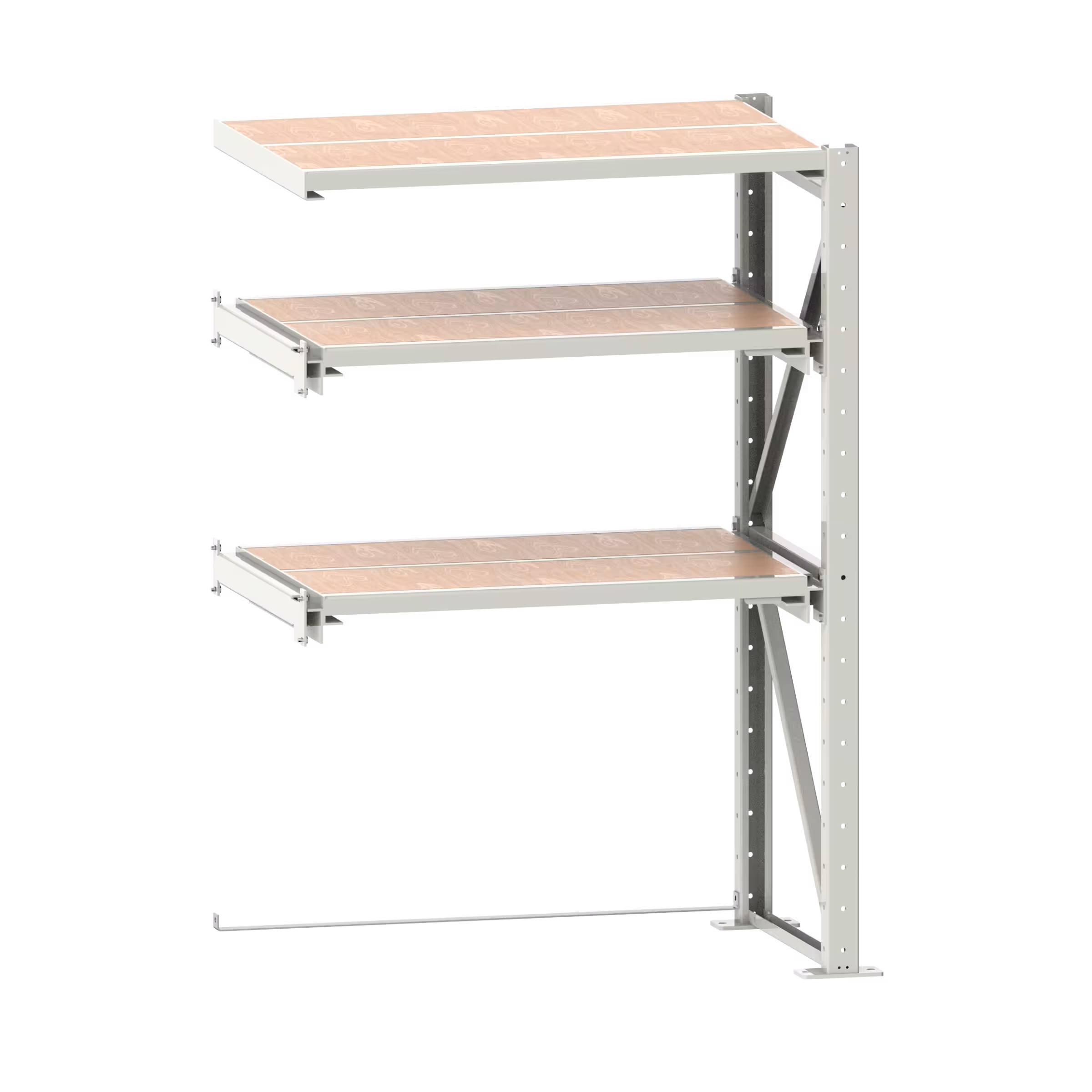 Schwerlast-Auszugregal Anbauregal (BxTxH) 1290x1260x2000mm 1 Festrahmen, 2 Auszugrahmen (800kg) Grauweiss RAL 9002