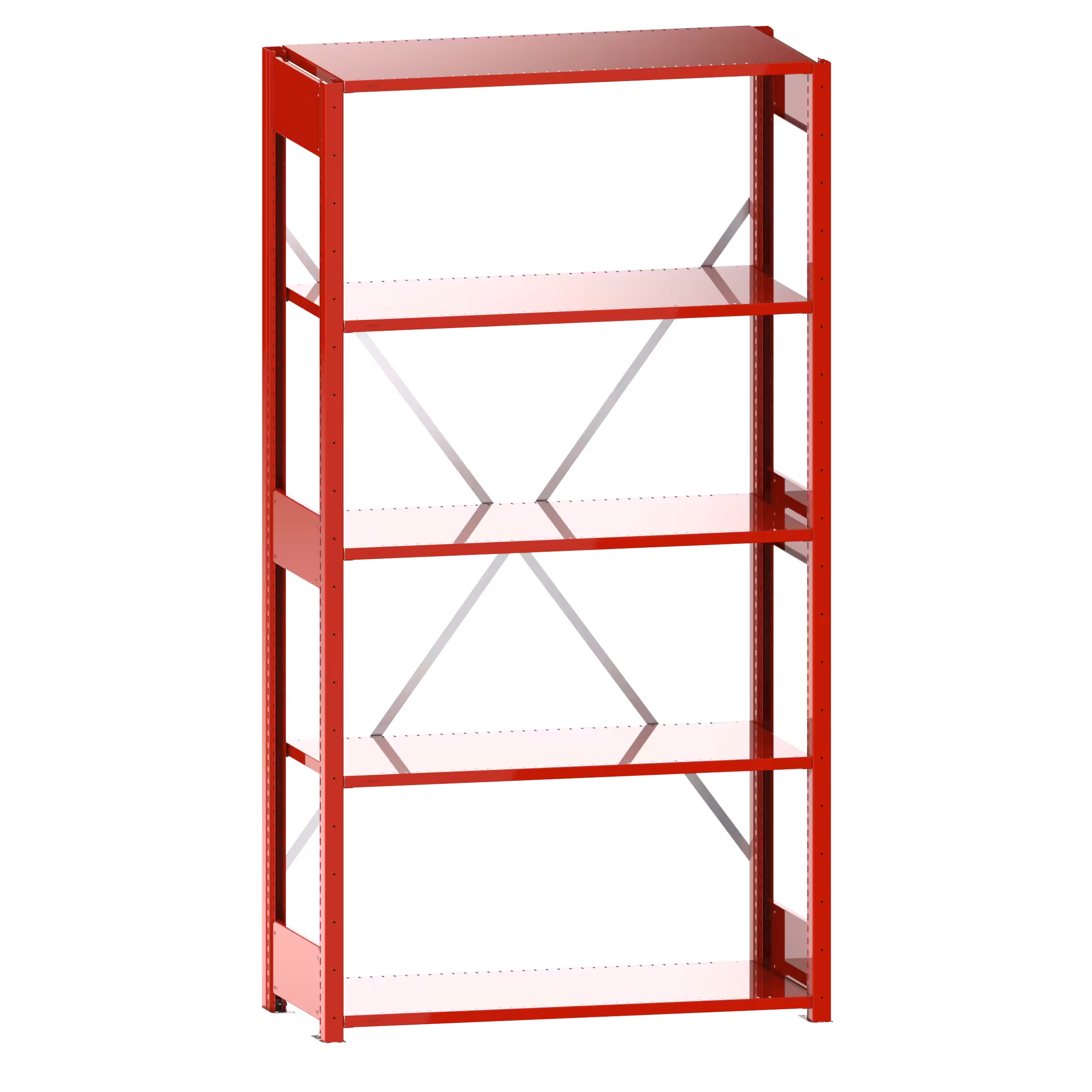 Universalregal L1006 Grundregal (BxTxH) 1300x500x2200mm 5 Fachböden geschlitzt (160kg) Feuerrot RAL 3000