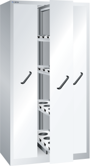 Vertikalauszugschrank mit Frontblenden (BxTxH) 1000x695x1950mm 3 Auszüge mit 4 Werkzeugrahmen pro Auszug (ohne NC Halter) Lichtgrau RAL 7035 / Reinweiss RAL 9010