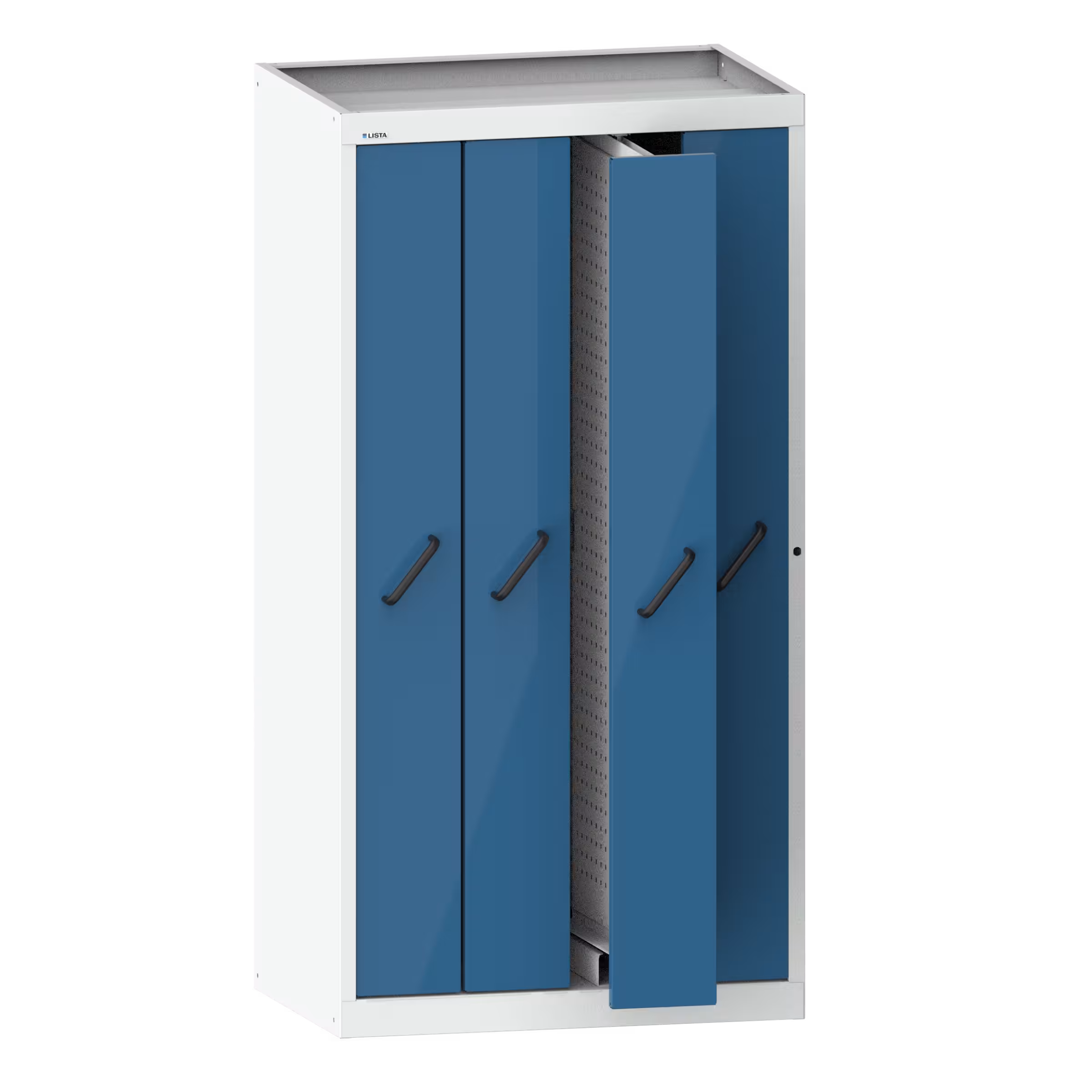 Vertikalauszugschrank mit Frontblenden (BxTxH) 1000x695x1950mm 4 Auszüge mit Lochwände Lichtgrau RAL 7035 / Brilliantblau RAL 5007