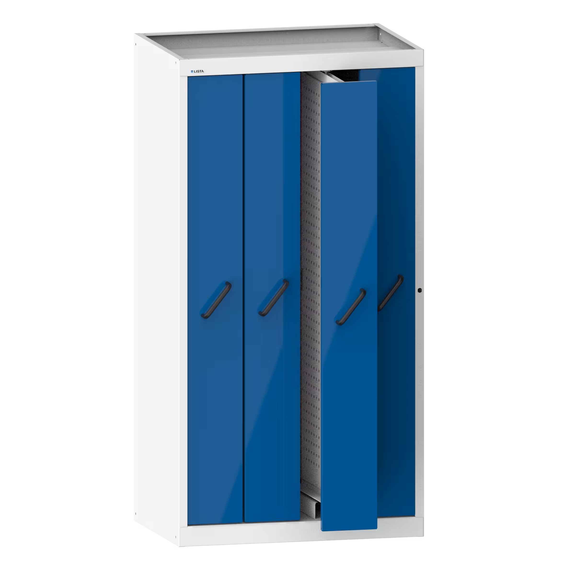 Vertikalauszugschrank mit Frontblenden (BxTxH) 1000x695x1950mm 4 Auszüge mit Lochwände Lichtgrau RAL 7035 / Capriblau RAL 5019