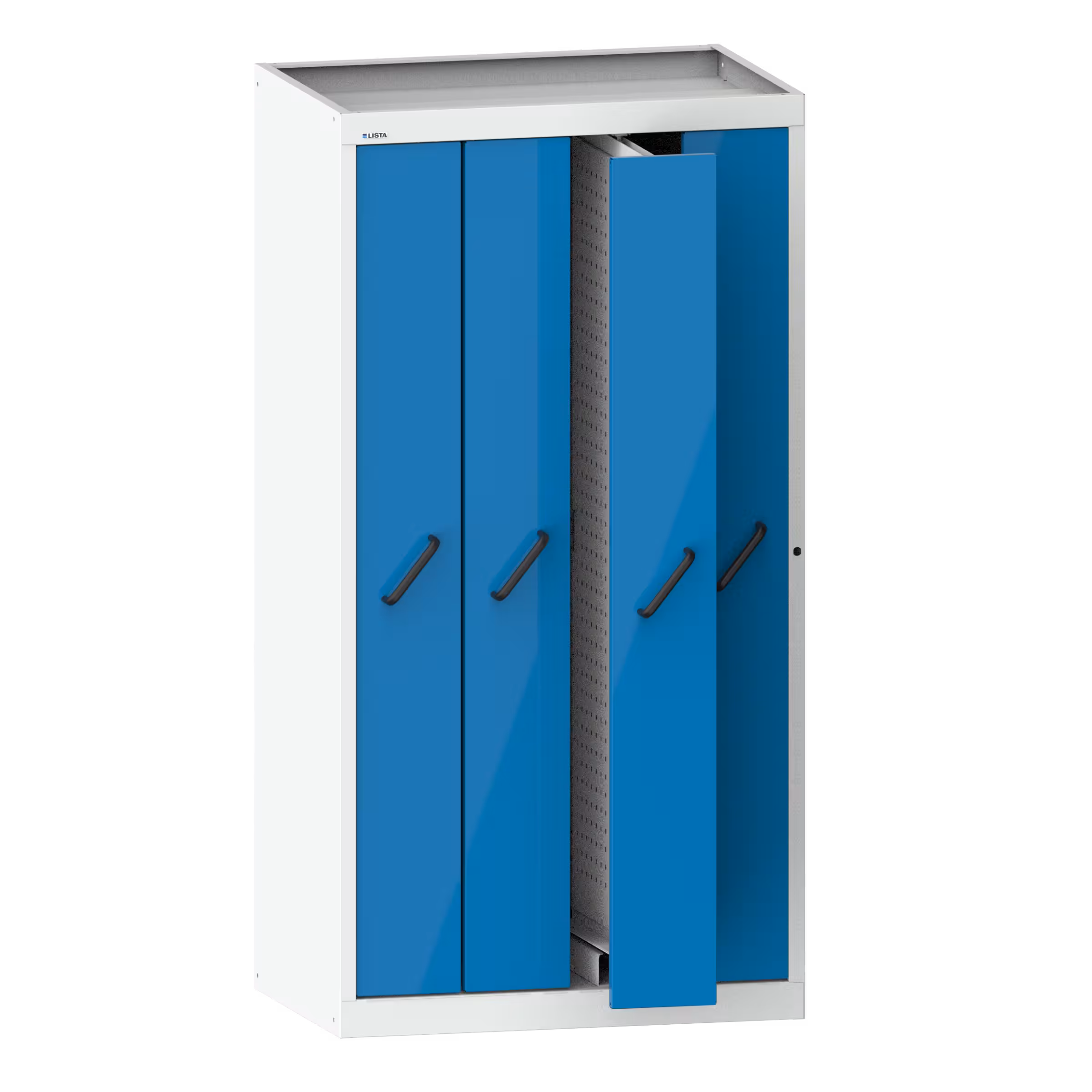 Vertikalauszugschrank mit Frontblenden (BxTxH) 1000x695x1950mm 4 Auszüge mit Lochwände Lichtgrau RAL 7035 / Lichtblau RAL 5012