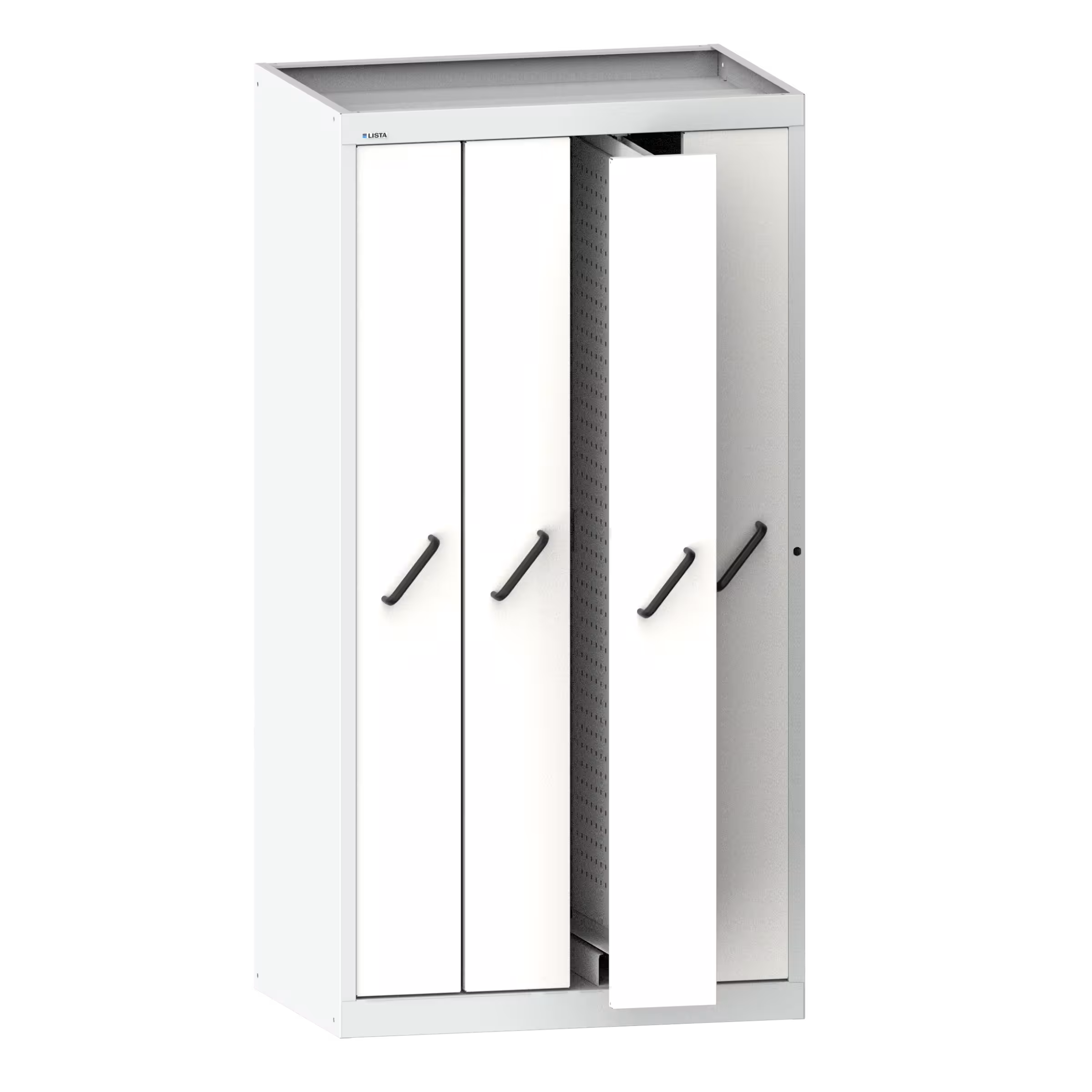 Vertikalauszugschrank mit Frontblenden (BxTxH) 1000x695x1950mm 4 Auszüge mit Lochwände Lichtgrau RAL 7035 / Reinweiss RAL 9010