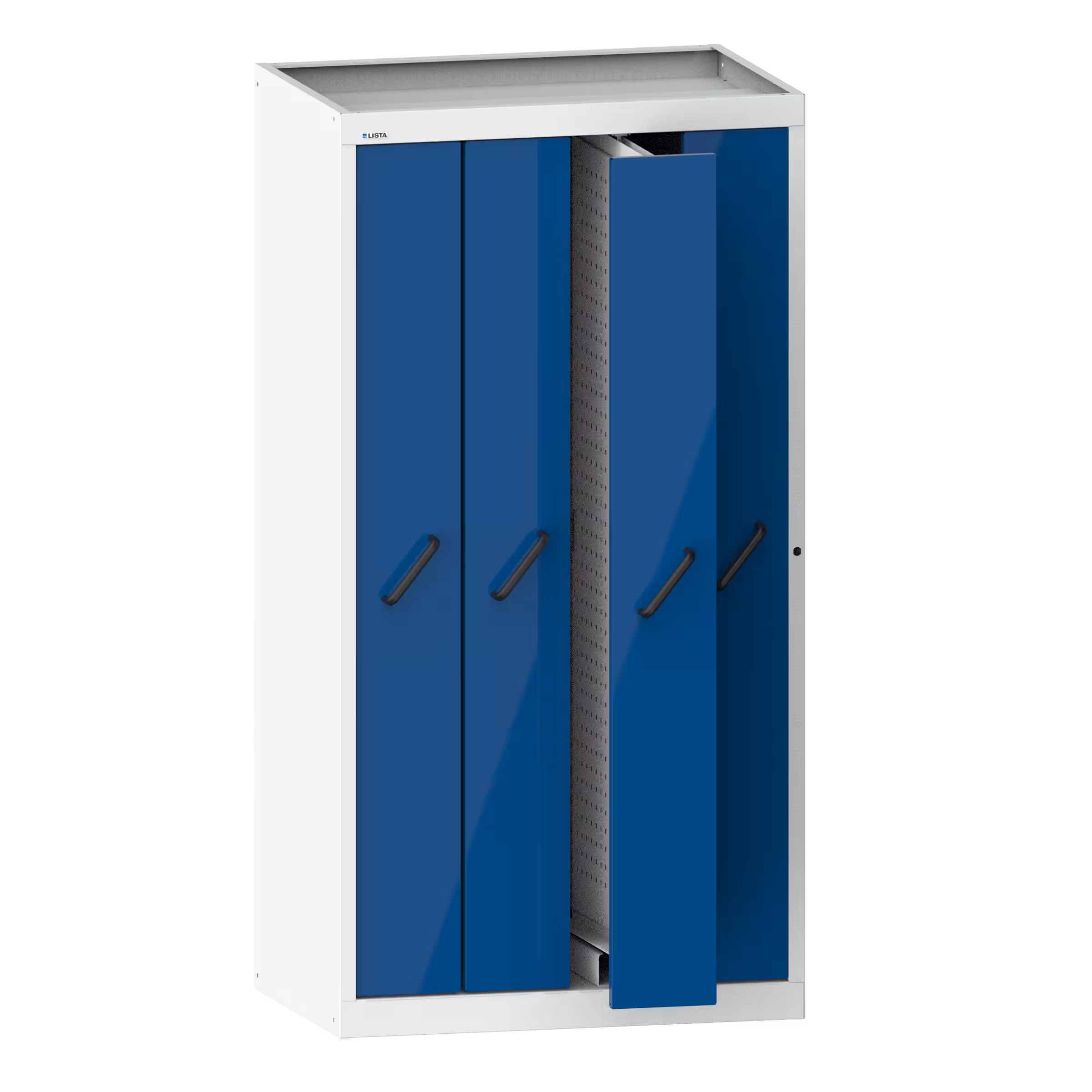 Vertikalauszugschrank mit Frontblenden (BxTxH) 1000x695x1950mm 4 Auszüge mit Lochwände Lichtgrau RAL 7035 / Signalblau RAL 5005