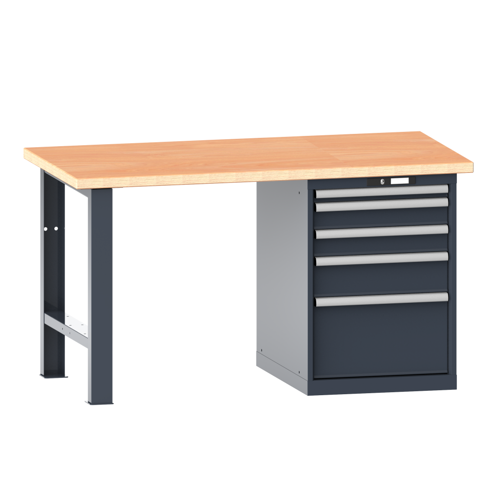 Werkbänke: Mit Multiplex- oder Buchenplatte inklusive Vormontage und Befestigungsmaterial. Schubladenschrank sowohl rechts als auch links montierbar.