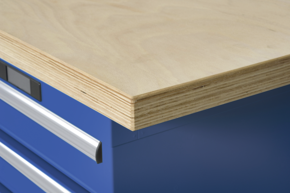 Werkbänke: Mit Multiplex- oder Buchenplatte inklusive Vormontage und Befestigungsmaterial. Schubladenschrank sowohl rechts als auch links montierbar.