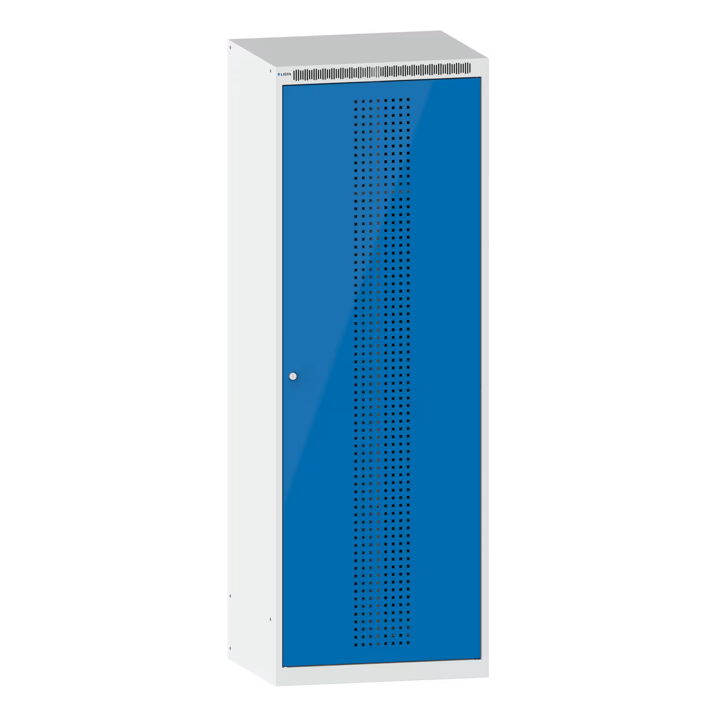Clothes locker (WxDxH) 600x500x1700mm 2 compartments without substructure, perforated doors, KEY Lock Light grey RAL 7035 / Light blue RAL 5012