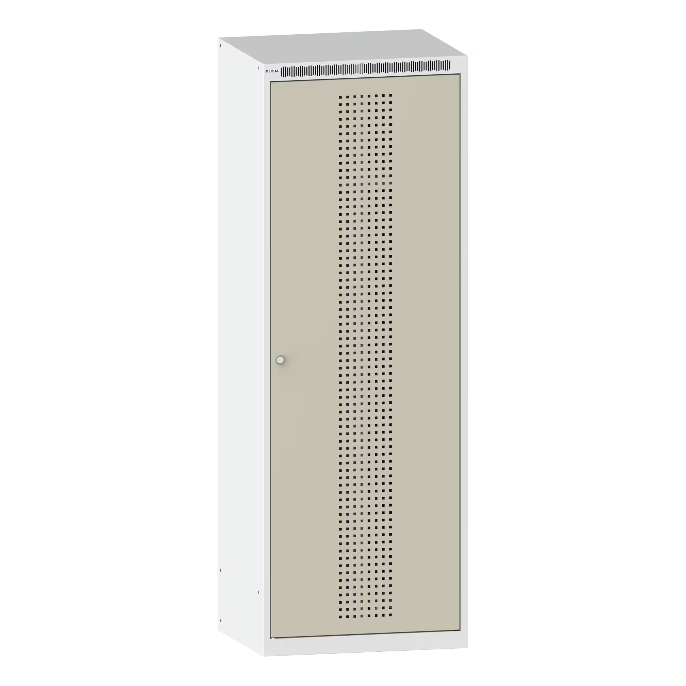 Clothes locker (WxDxH) 600x500x1700mm 2 compartments without substructure, perforated doors, KEY Lock Light grey RAL 7035 / Pebble grey RAL 7032