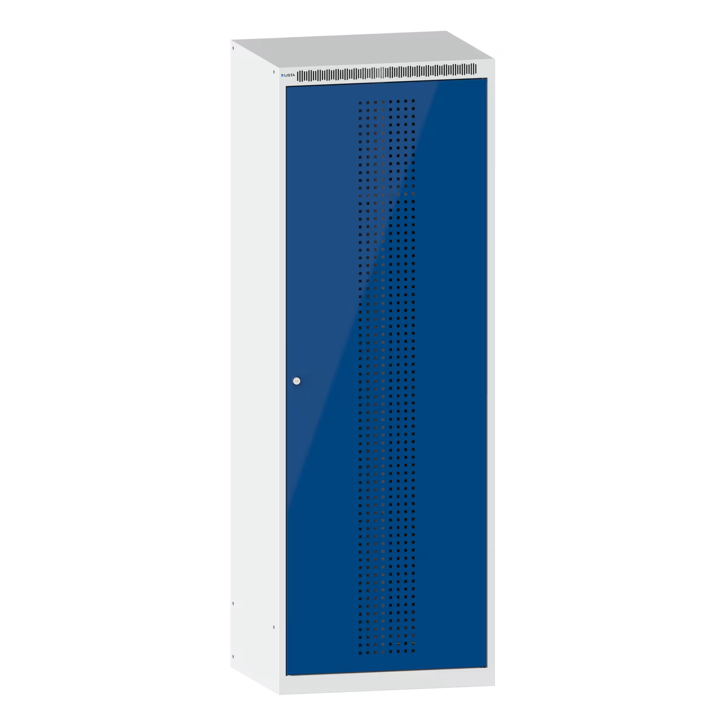 Clothes locker (WxDxH) 600x500x1700mm 2 compartments without substructure, perforated doors, KEY Lock Light grey RAL 7035 / Signal blue RAL 5005
