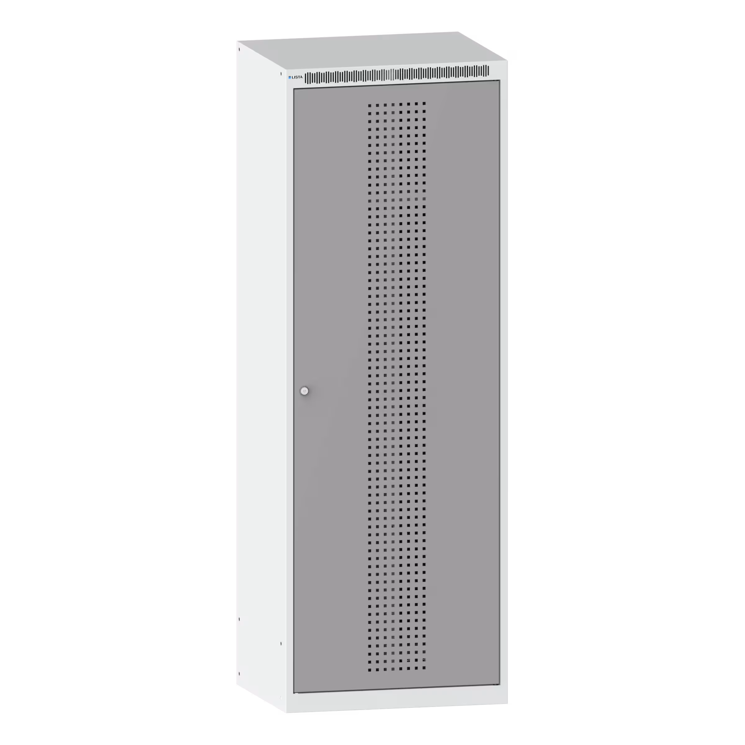 Clothes locker (WxDxH) 600x500x1700mm 2 compartments without substructure, perforated doors, KEY Lock Light grey RAL 7035 / White aluminium RAL 9006