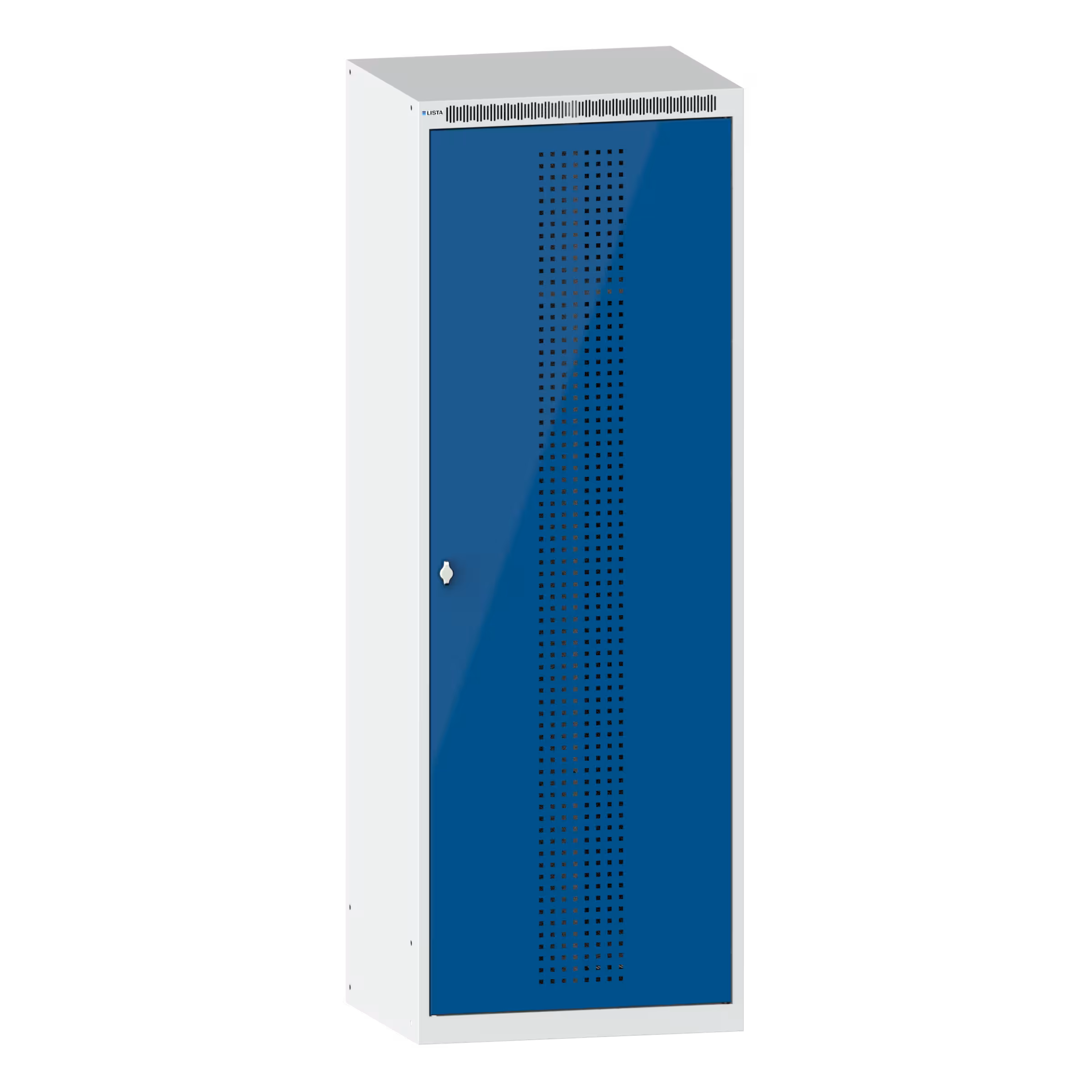 Clothes locker (WxDxH) 600x500x1700mm 2 compartments without substructure, perforated doors, locking mechanism Light grey RAL 7035 / Capri blue RAL 5019