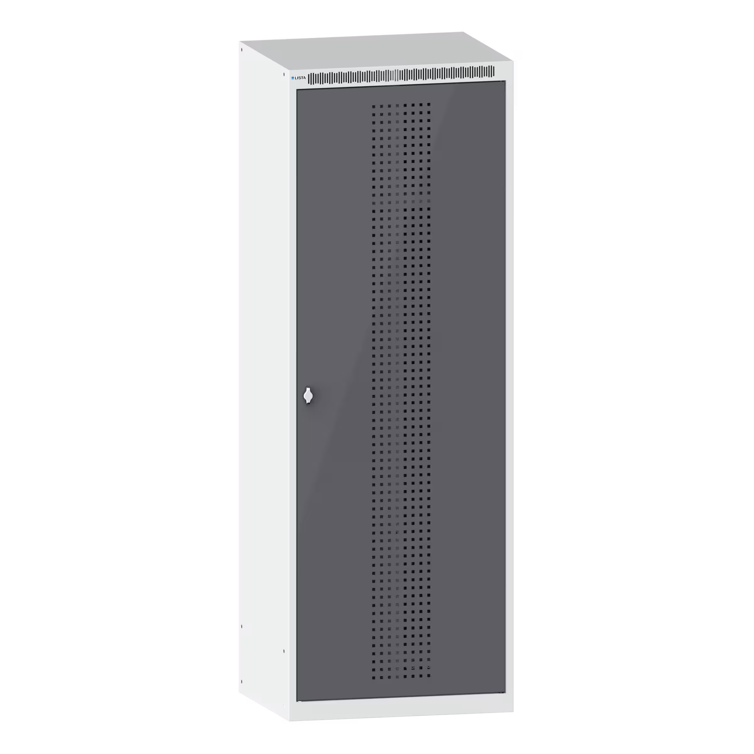 Clothes locker (WxDxH) 600x500x1700mm 2 compartments without substructure, perforated doors, locking mechanism Light grey RAL 7035 / Grey metallic NCS S 6502-B