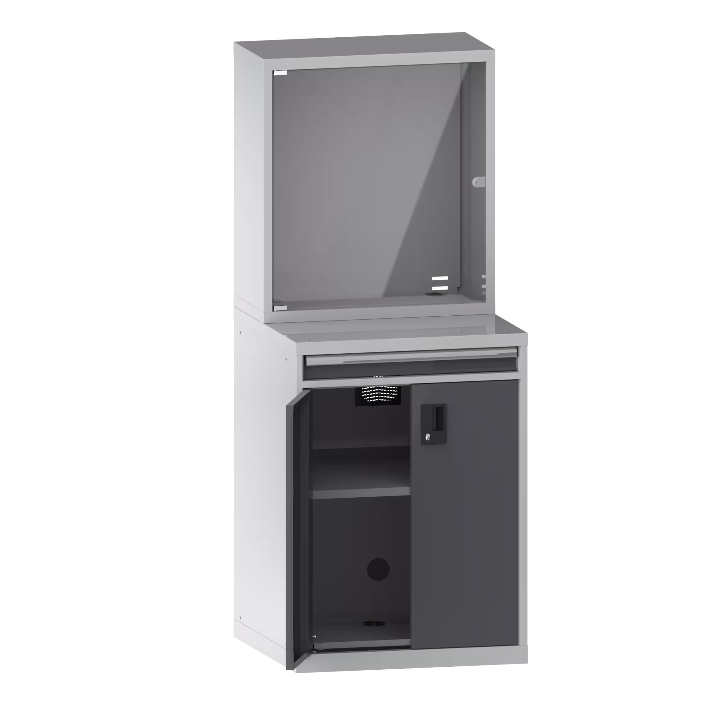 Computer cabinets: Computers and the corresponding hardware and software must be protected from dust, dirt and unauthorised access on the shop floor. The LISTA computer cabinet provides a safe and proven solution that fulfils this requirement.