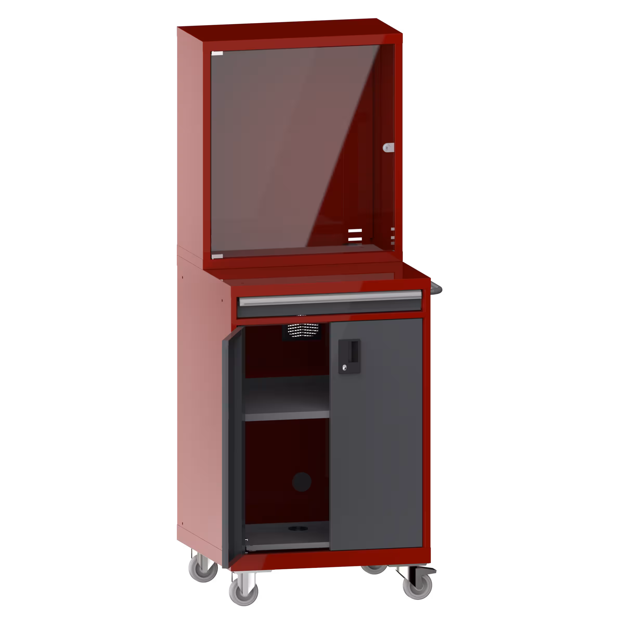 Computer cabinets: Computers and the corresponding hardware and software must be protected from dust, dirt and unauthorised access on the shop floor. The LISTA computer cabinet provides a safe and proven solution that fulfils this requirement.