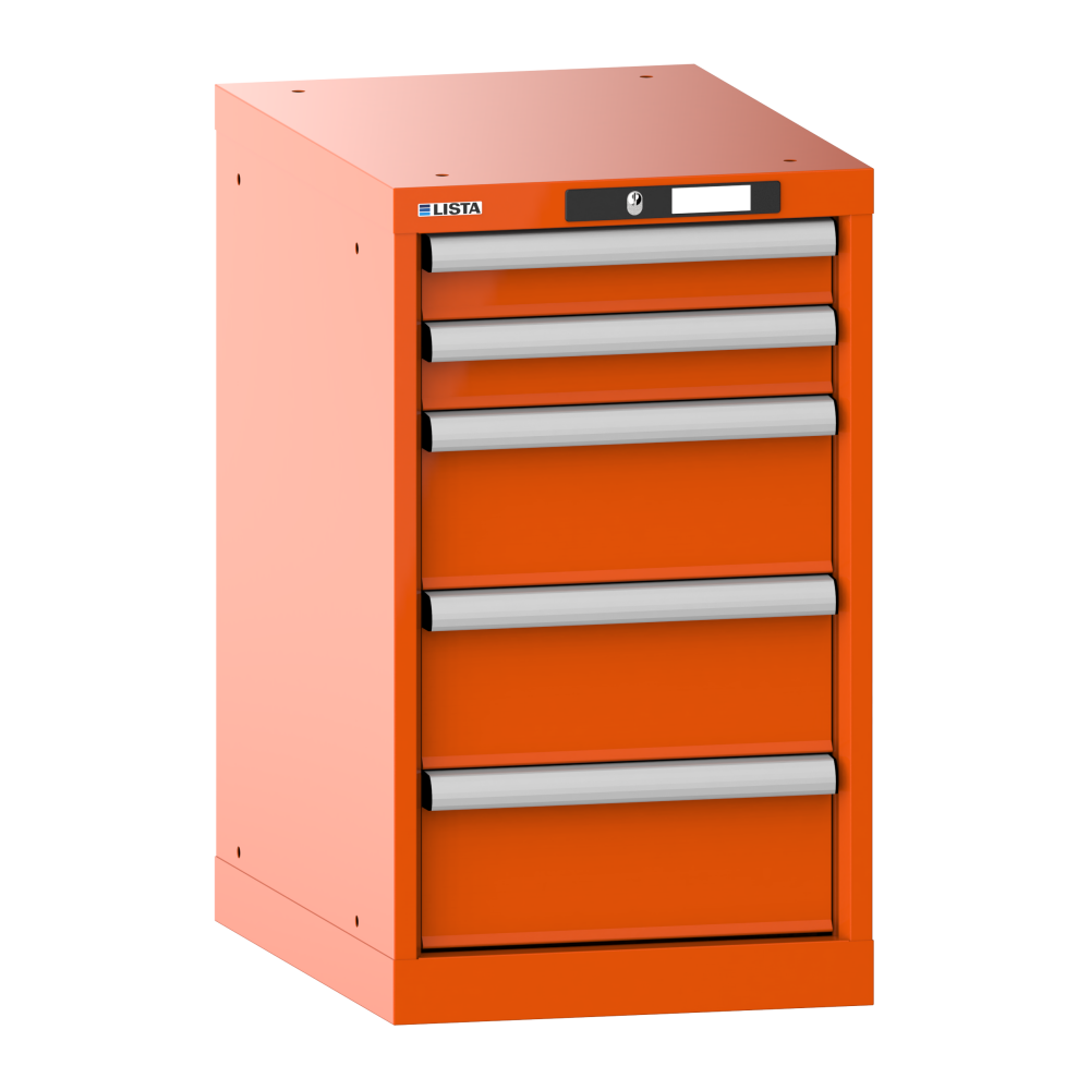 Drawer cabinet 18x27E (WxDxH) 411x572x700mm 5 drawers (2x75/3x150) 75kg RFID Lock Orange RAL 2004