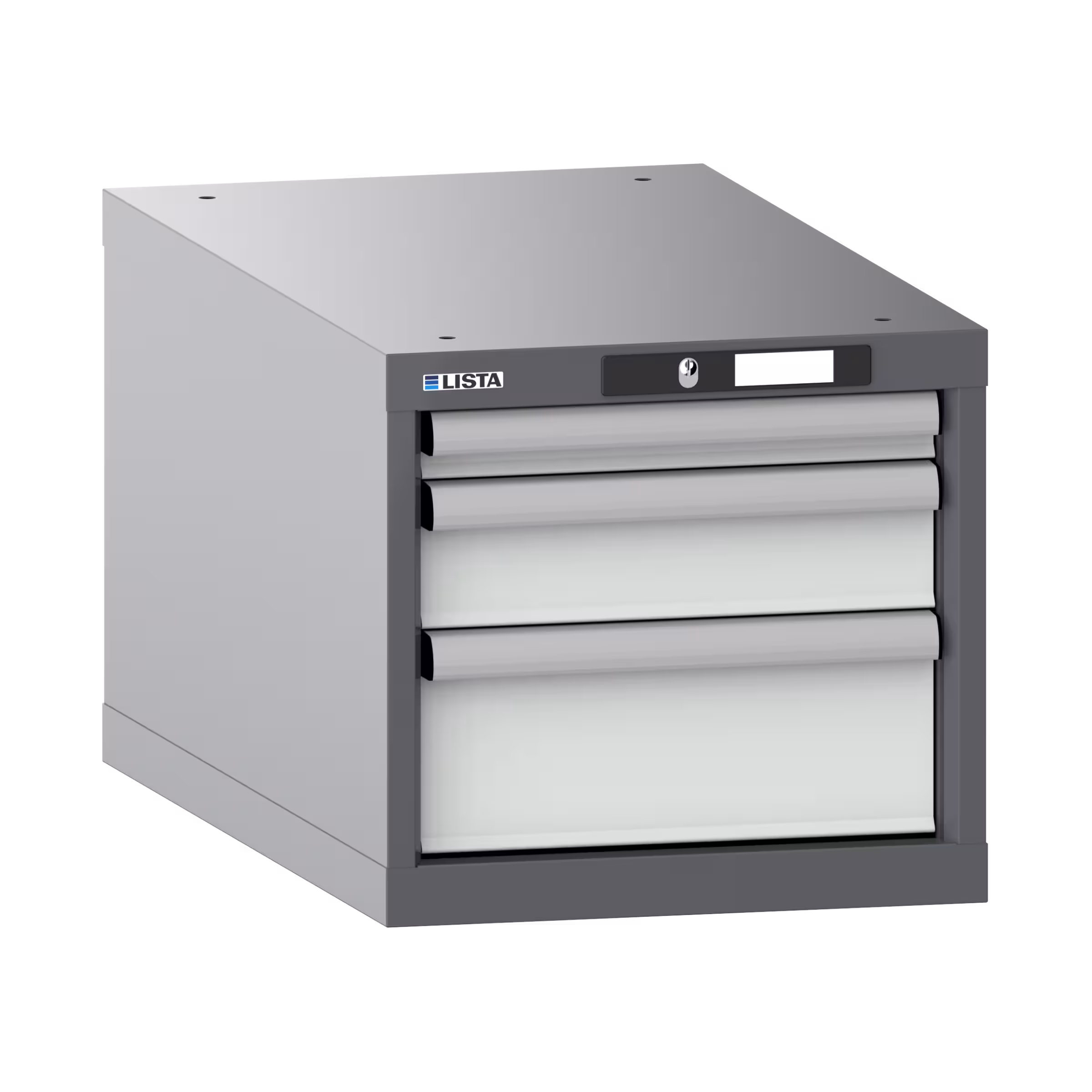 Drawer cabinet 18x36E (WxDxH) 411x725x383mm 3 drawers (1x50/1x100/1x150) 75kg RFID Lock Grey metallic NCS S 6502-B / Light grey RAL 7035